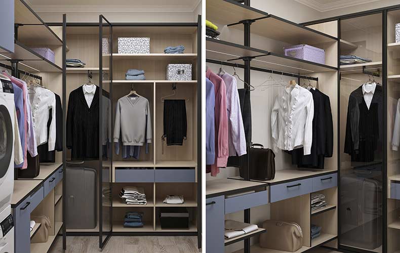 - Легко предусмотреть хорошую систему освещения и вентиляции, что поможет поддерживать комфортные условия и сохранность одежды и аксессуаров.