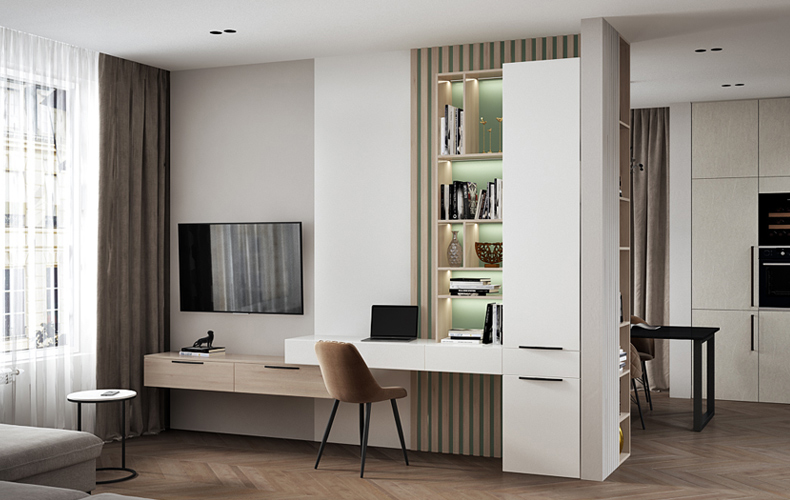 — Выбор полок или шкафов определяется образом жизни хозяина. Все люди — разные. Есть те, кто в путешествиях проводит времени больше, чем дома. Они предпочитают мебель закрытого типа, функциональную, используют ее для хранения: шкафы закрыл, и беспорядка нет.