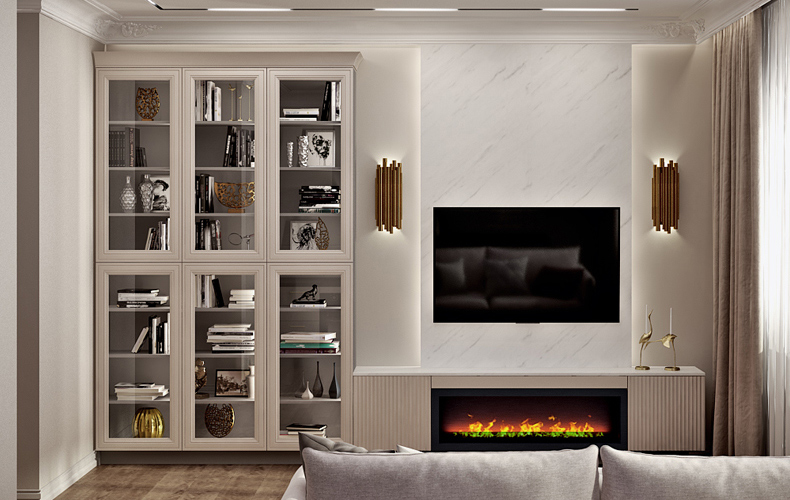 — Уместным компромиссом между полностью открытыми полками и закрытыми шкафами можно назвать витрины для коллекций со стеклянными стенками и дверцей. С одной стороны, прозрачное стекло визуально легче воспринимается, чем глухой фасад. Предметы, находящиеся в витрине, на виду, коллекцией можно любоваться, редкими книгами — гордиться. Красивая подсветка преподносит их наиболее выигрышно. При этом предметы защищены от воздействия пыли и влаги (но не солнечных лучей).