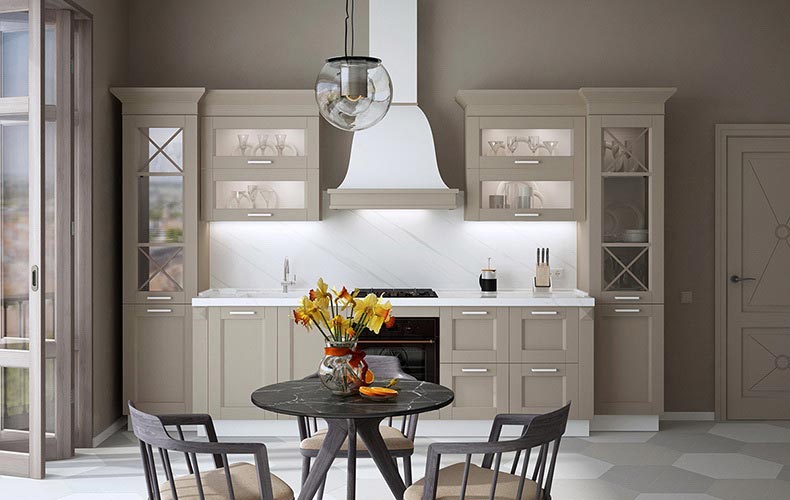 - Светлые оттенки. Светлая палитра отделочных материалов и мебели визуально расширяет пространство и делает помещение светлее, что на малогабаритной кухне очень важно.