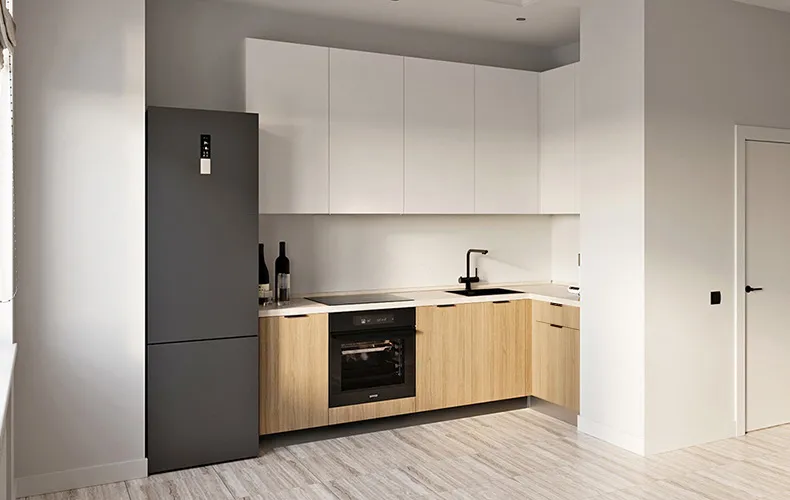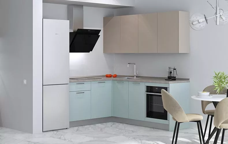 Фабио Комфорт сет 12 — угловая компактная кухня, которая отлично подойдет и для обычной кухни в стандартной квартире, и для небольшой студии. Угловая нижняя секция позволяет продлить рабочую поверхность. Отдельно стоящий холодильник вы можете разместить так, как удобно вам.