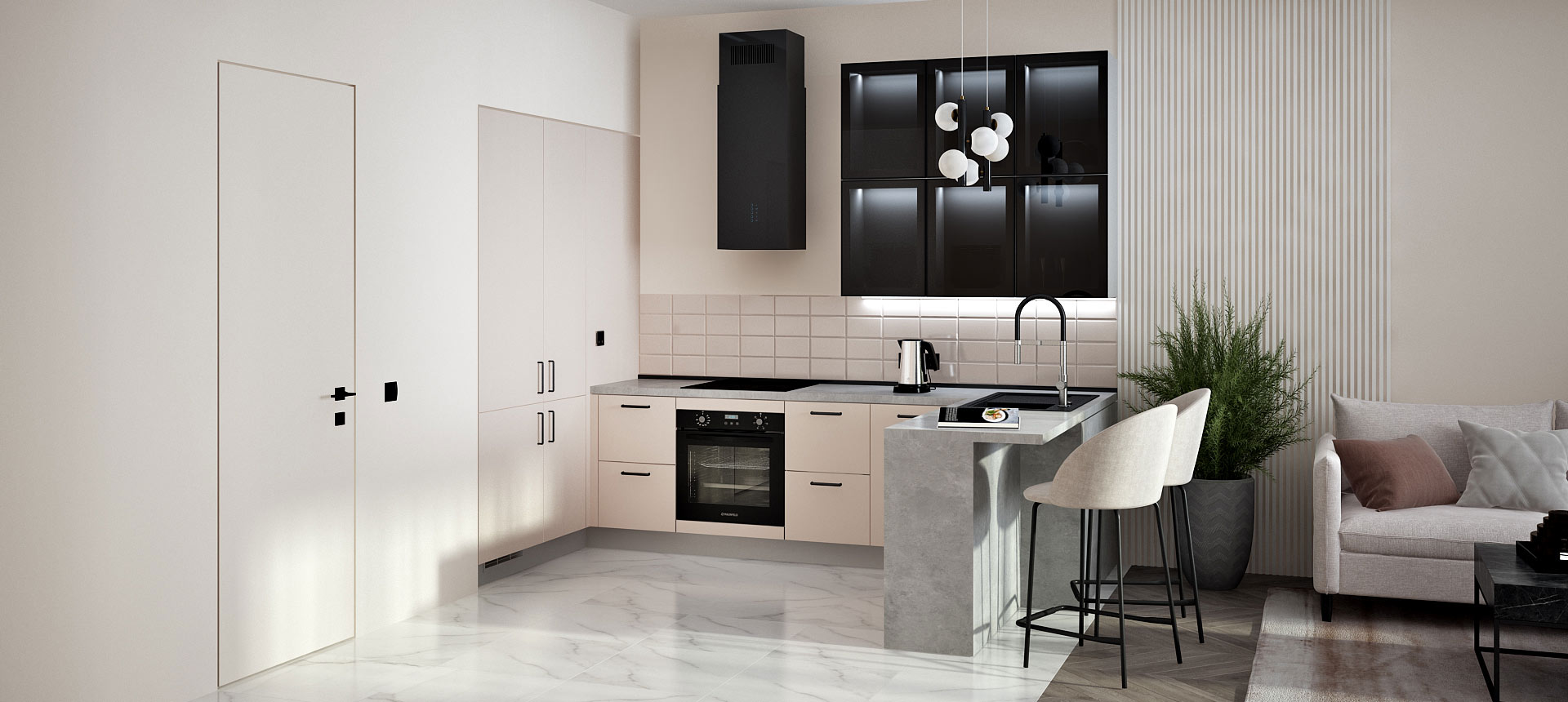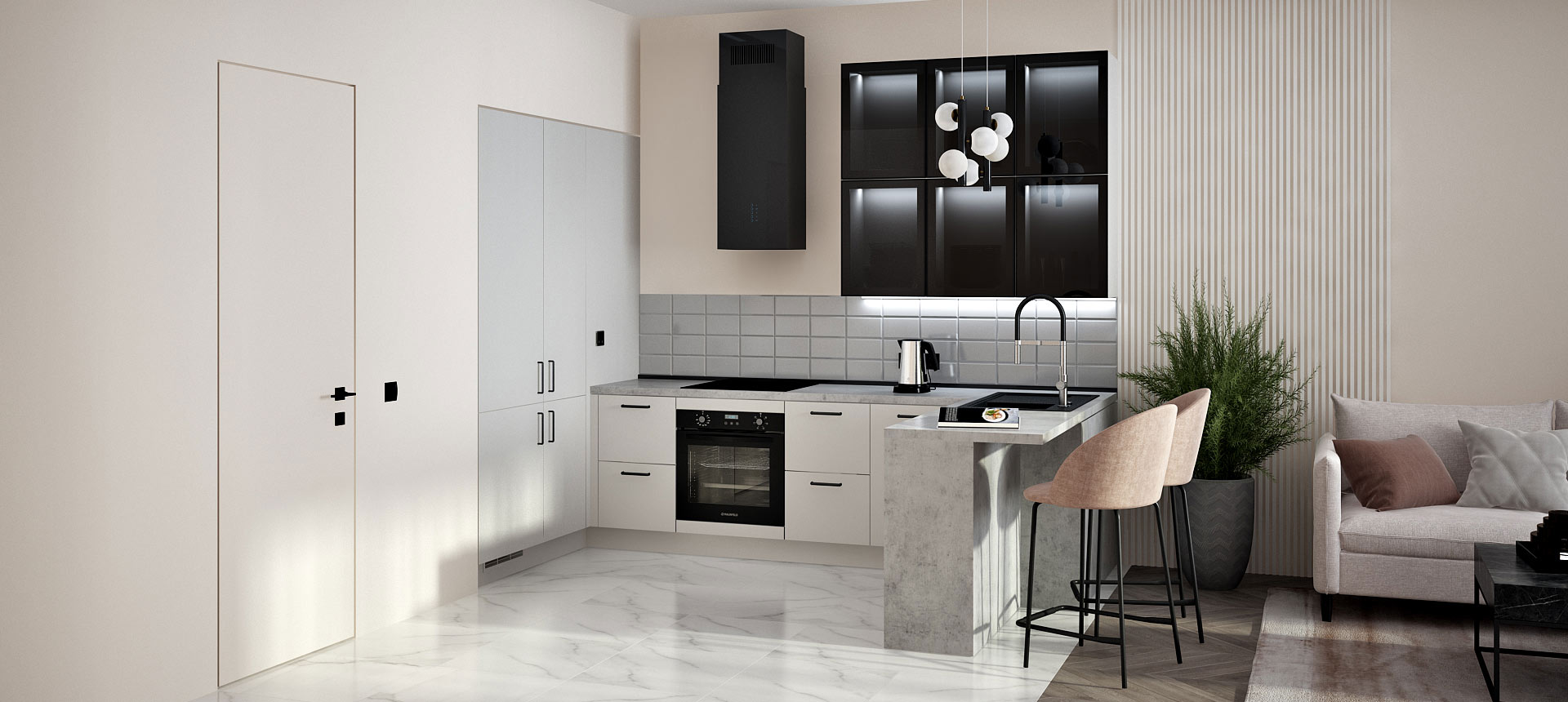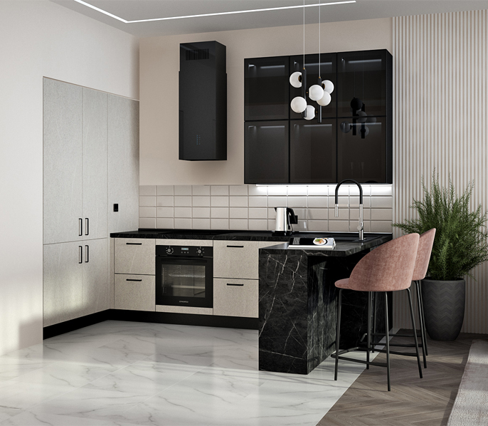 Кухня в стиле лофт и вместительный шкаф для новостройки в Санкт-Петербурге