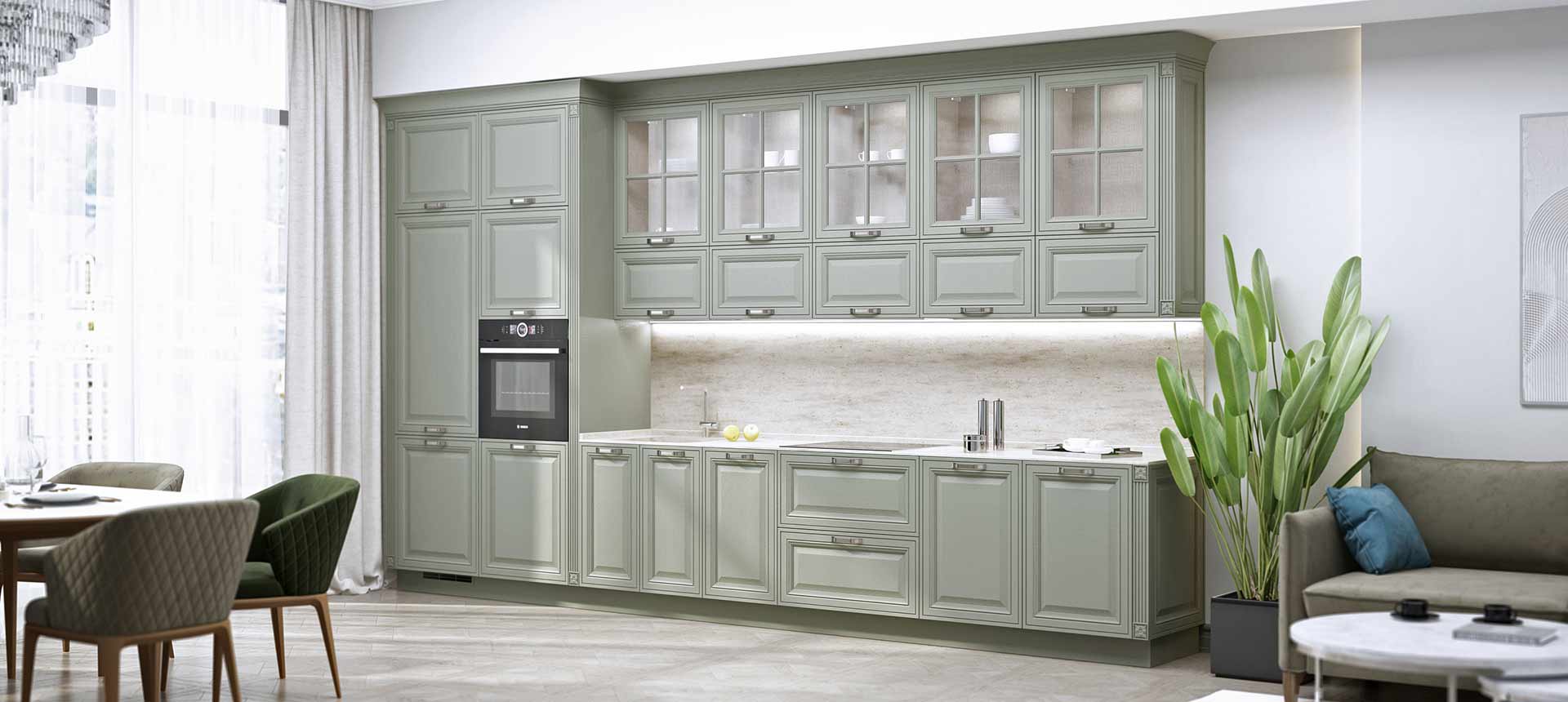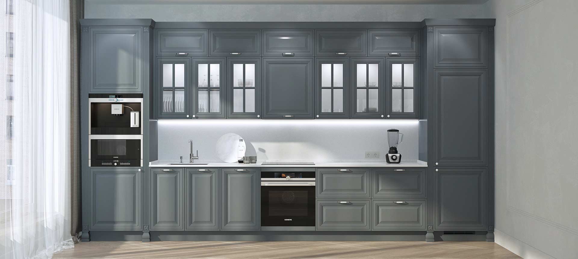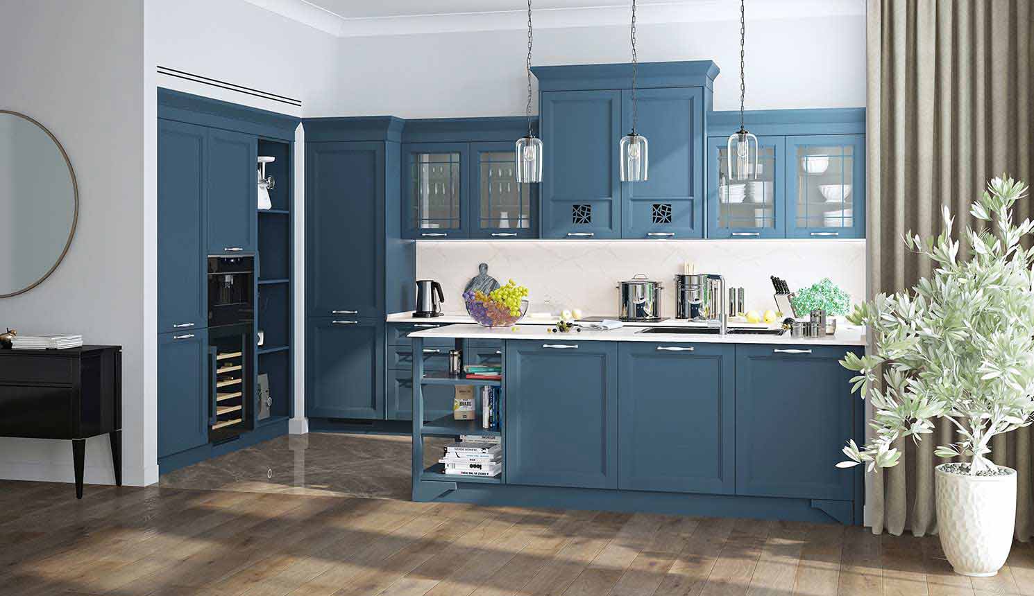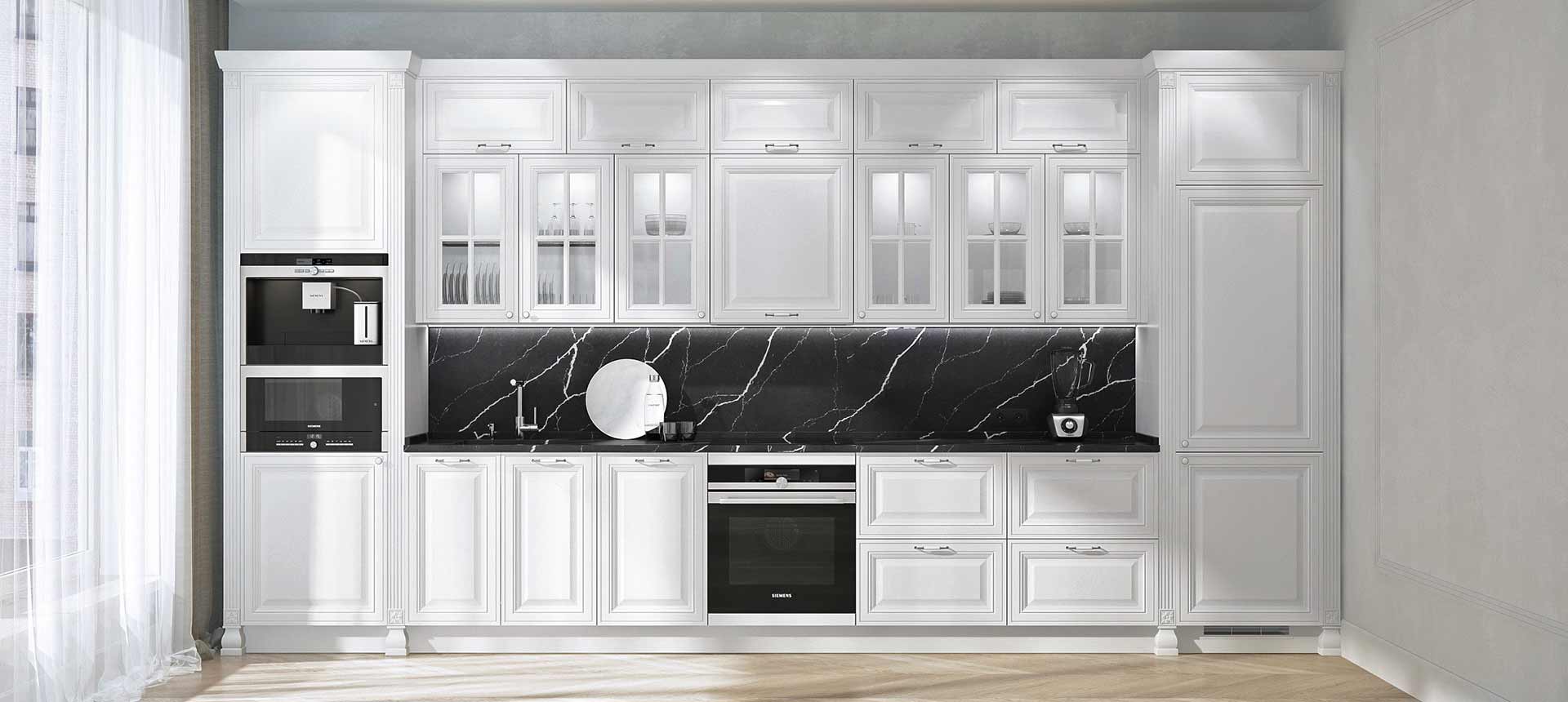 Современная классика — облегченный вариант классической кухни. Кухню в неоклассическом стиле отличает лаконичность, отсутствие выраженной патины, меньшее количество резного декора. Для нее характерны рамочные или имитирующие рамочные фасады, светлые тона и сочетание классических элементов мебели с самой современной бытовой техникой.