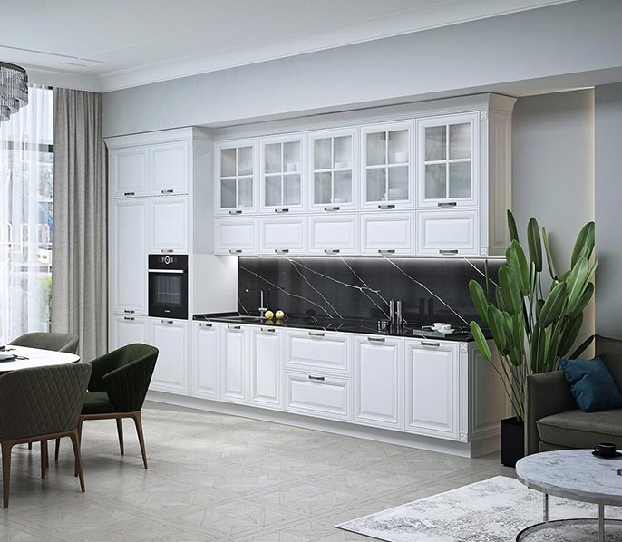 Классическая кухня станет идеальным выбором в просторных, больше 15 кв.м помещениях с высокими потолками. Такая кухня — выбор тех, кому по душе уют, натуральные материалы, утонченная элегантность и изящество. Такая кухня хранит тепло человеческих рук, ведь многие элементы, например, патина выполняются вручную. Кухню классика стоит выбрать, если остальной интерьер квартиры также выполнен в классическом стиле. Кухня с элементами классики — отличный выбор для загородного дома, выполненного в традиционном стиле из бревен или бруса. В такую кухню отлично впишутся доставшийся в наследство дедушкин самовар или хрустальный сервиз, переходящий в семье из поколение в поколение.
