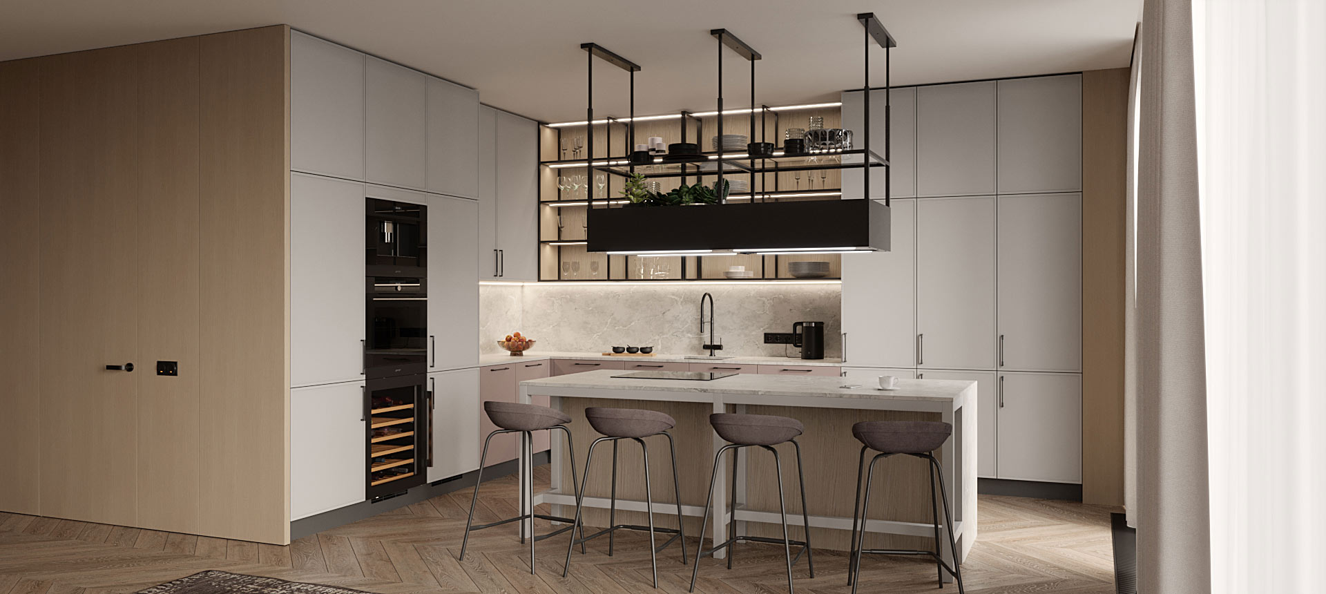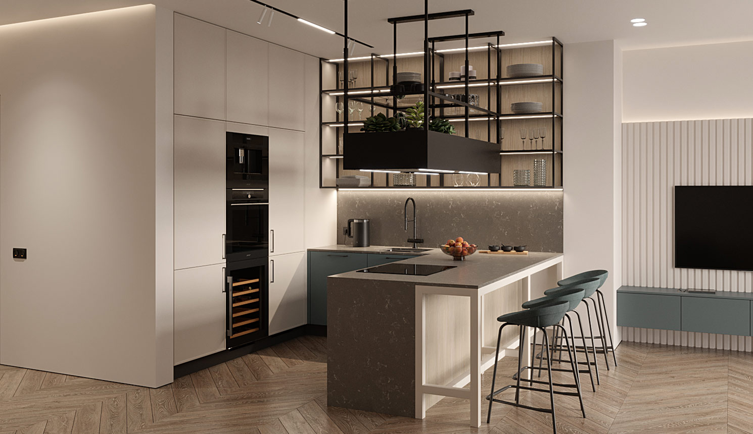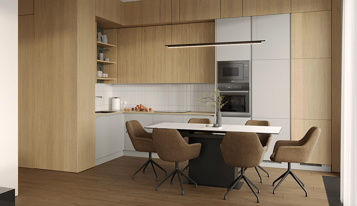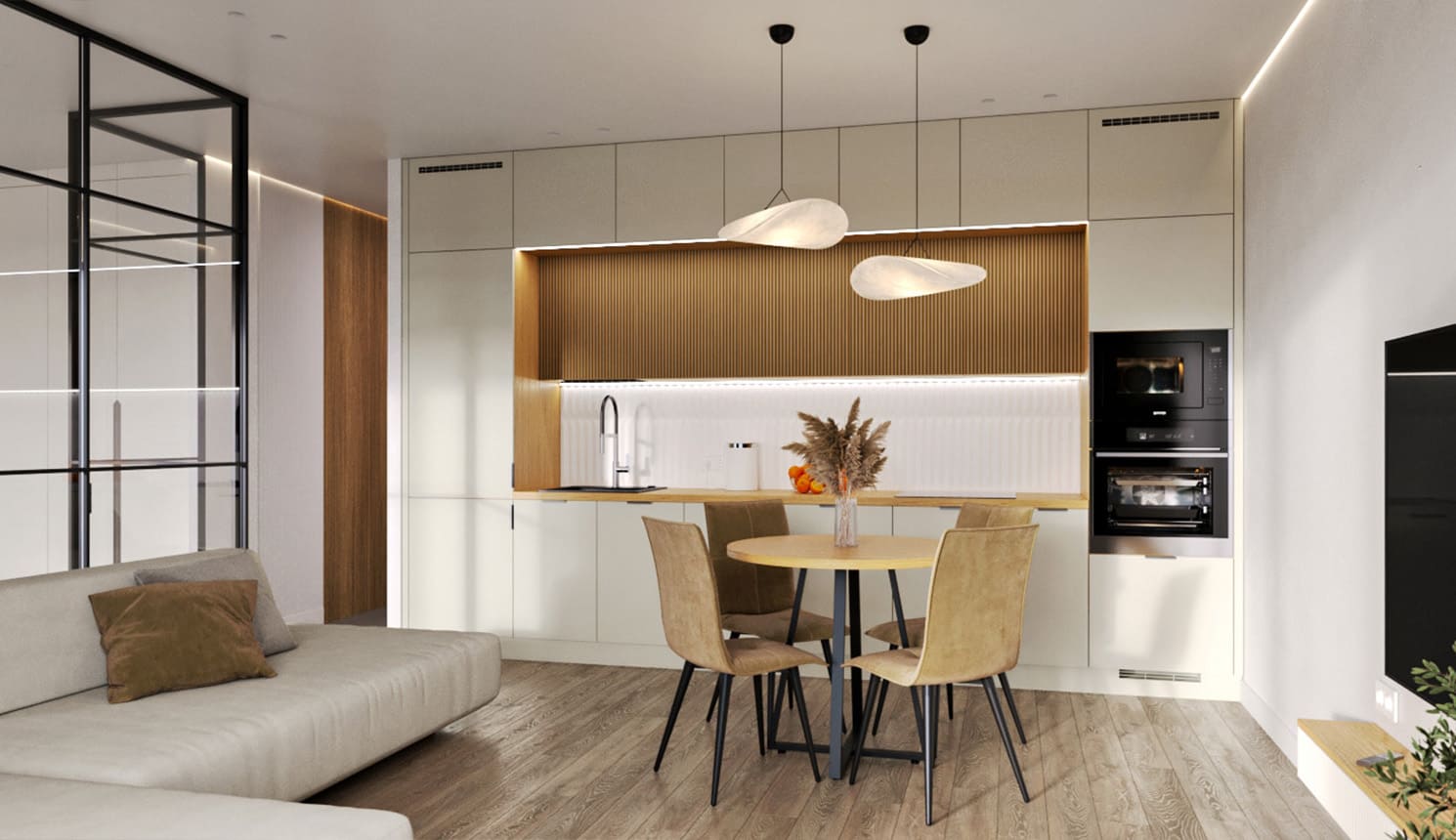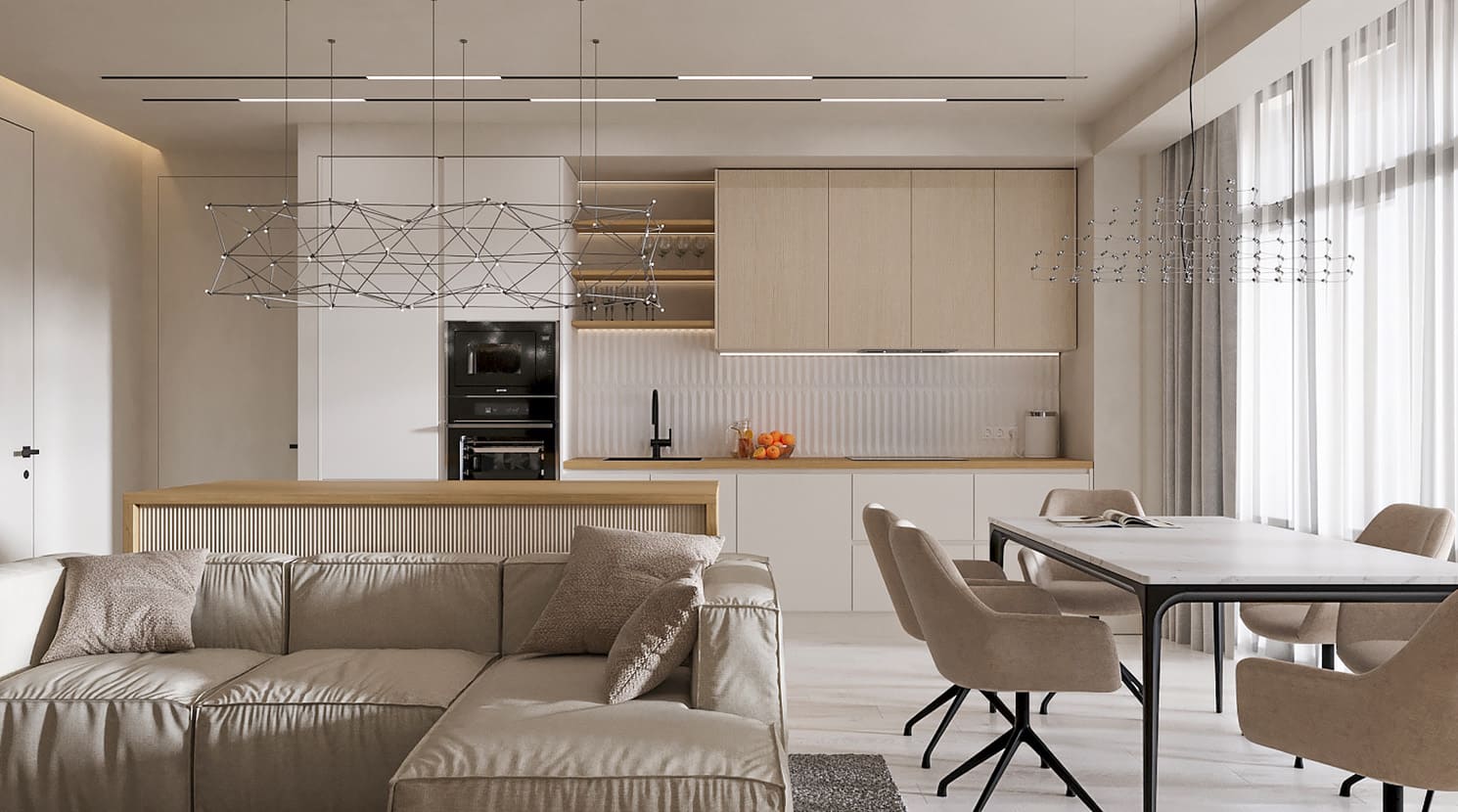 В этом году в тренде современный и скандинавский стили, неоклассика и минимализм. В моде серые, белые, бежевые, пастельные кухни с ненавязчивыми акцентами. Актуальны имитация фактур под дерево, бетон, камень, керамику, матовые поверхности, фасады без ручек и декора, кухни-трансформеры. Подробнее о трендах дизайна 2023 года можно прочитать в статье.