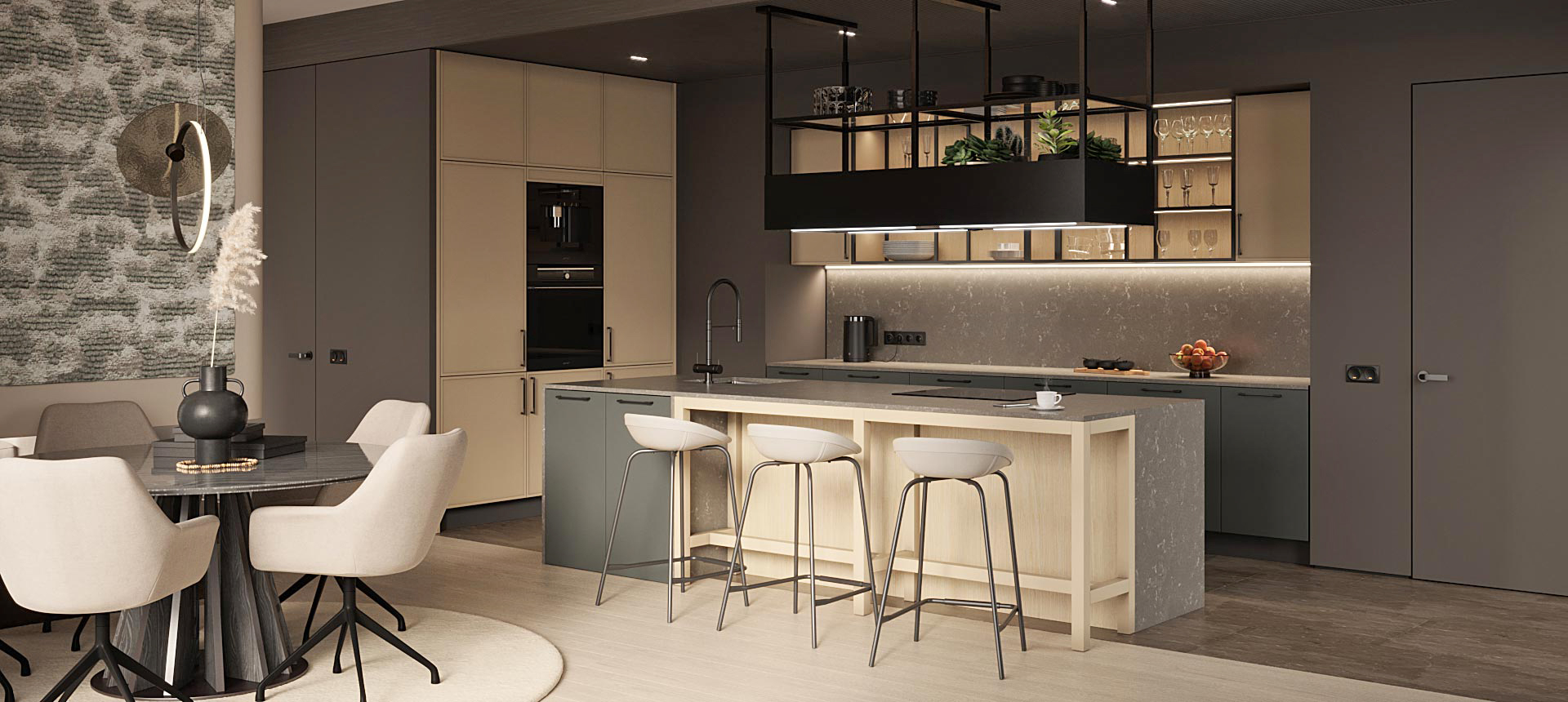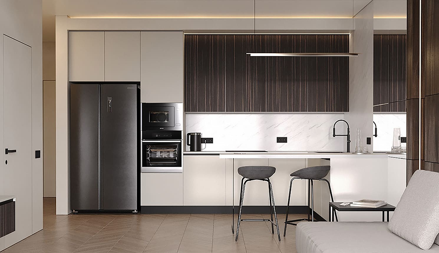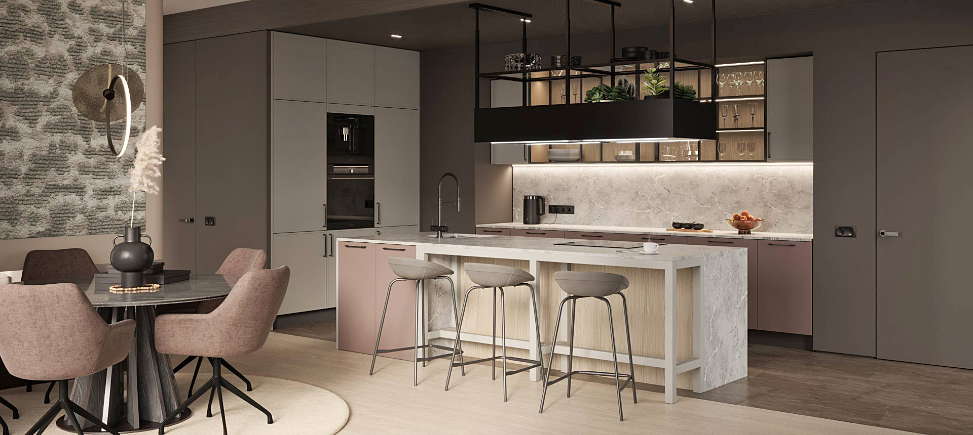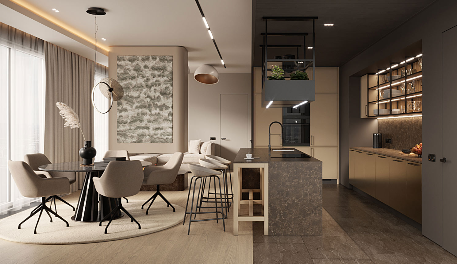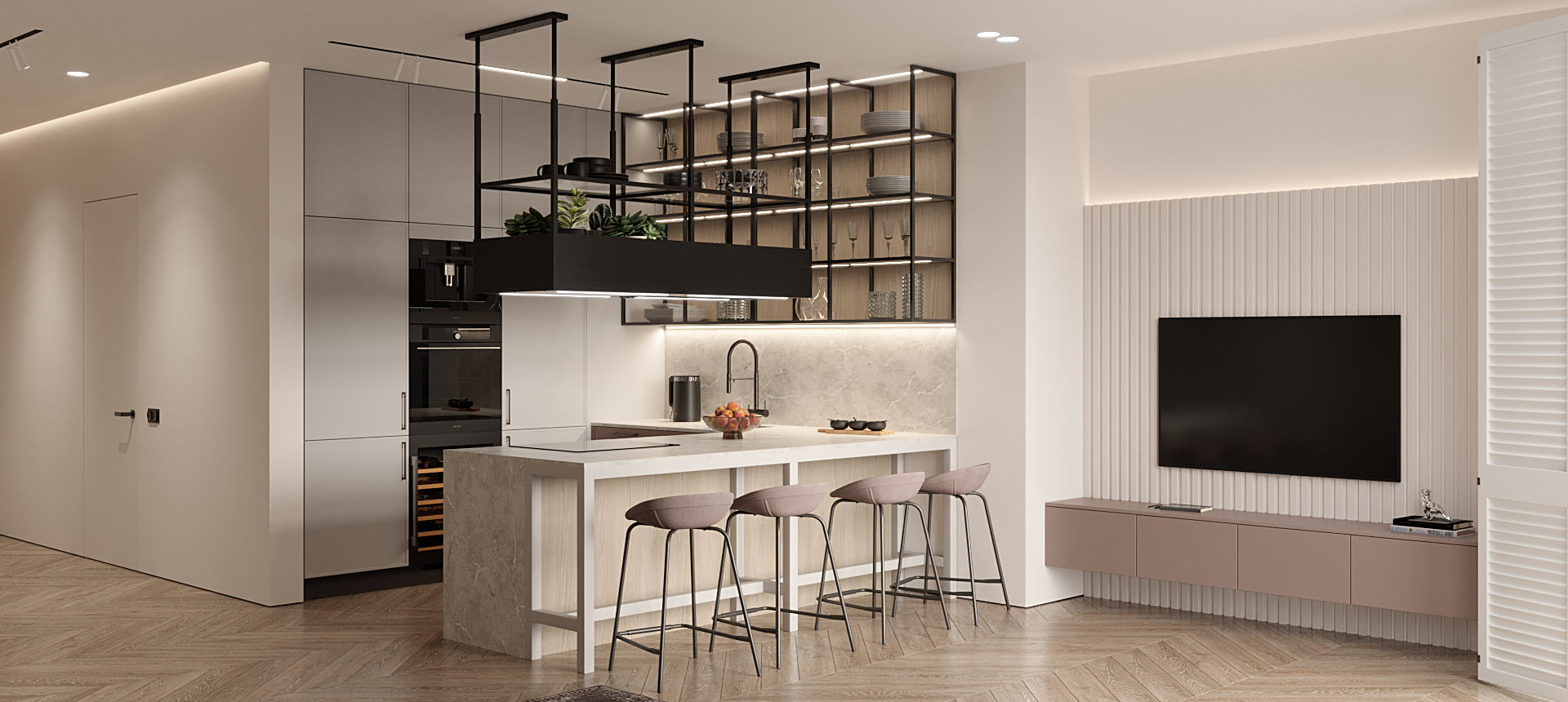 В этом году в тренде современный и скандинавский стили, неоклассика и минимализм. В моде серые, белые, бежевые, пастельные кухни с ненавязчивыми акцентами. Актуальны имитация фактур под дерево, бетон, камень, керамику, матовые поверхности, фасады без ручек и декора, кухни-трансформеры. Подробнее о трендах дизайна 2023 года можно прочитать в статье.