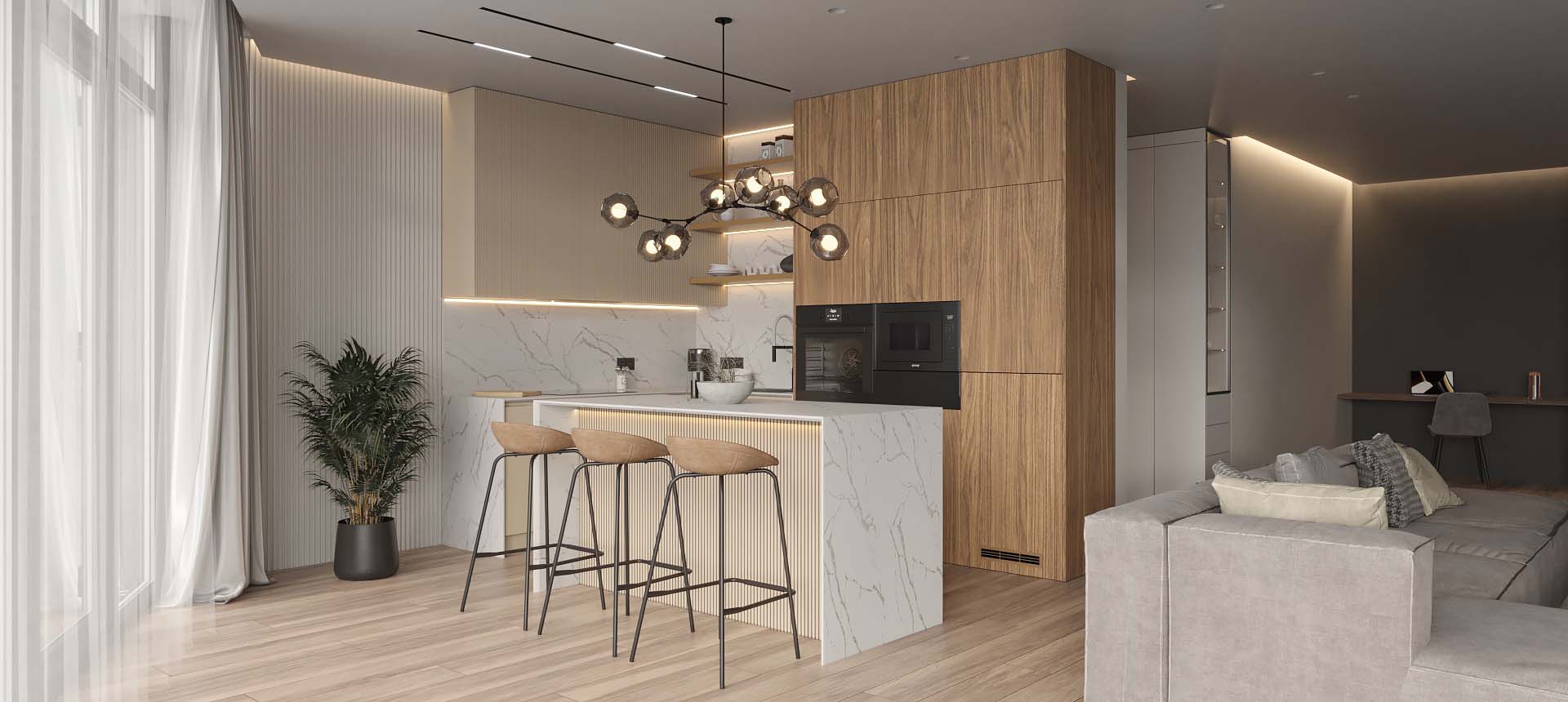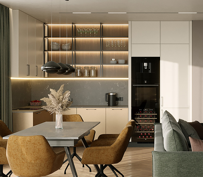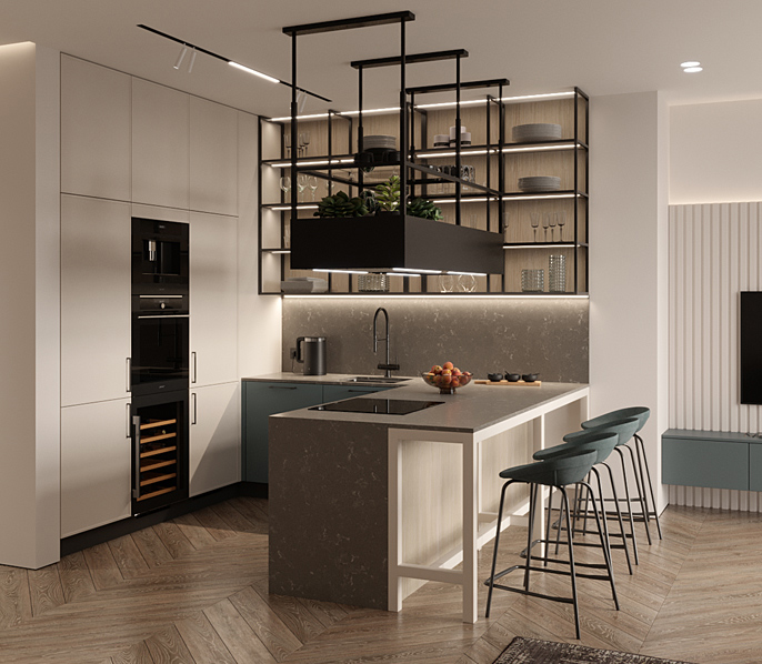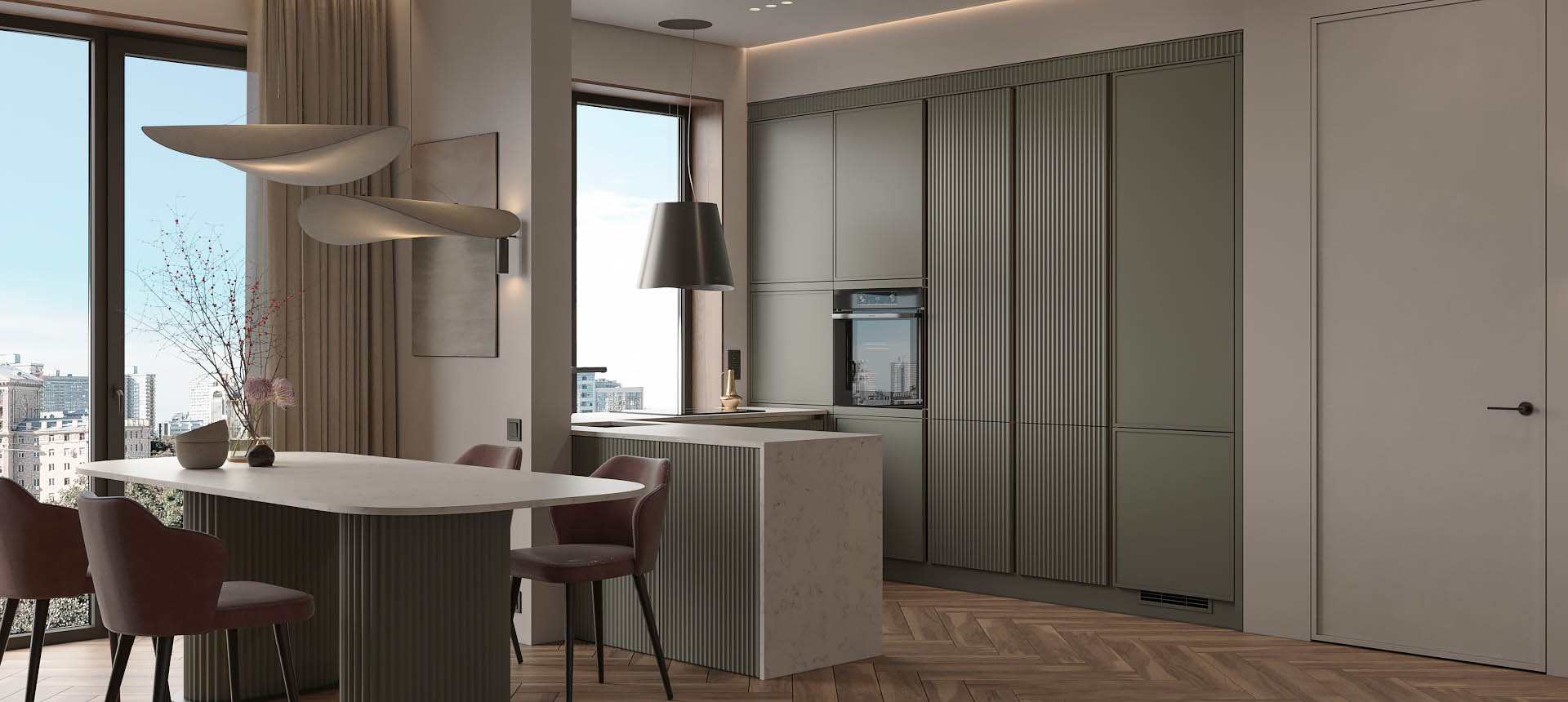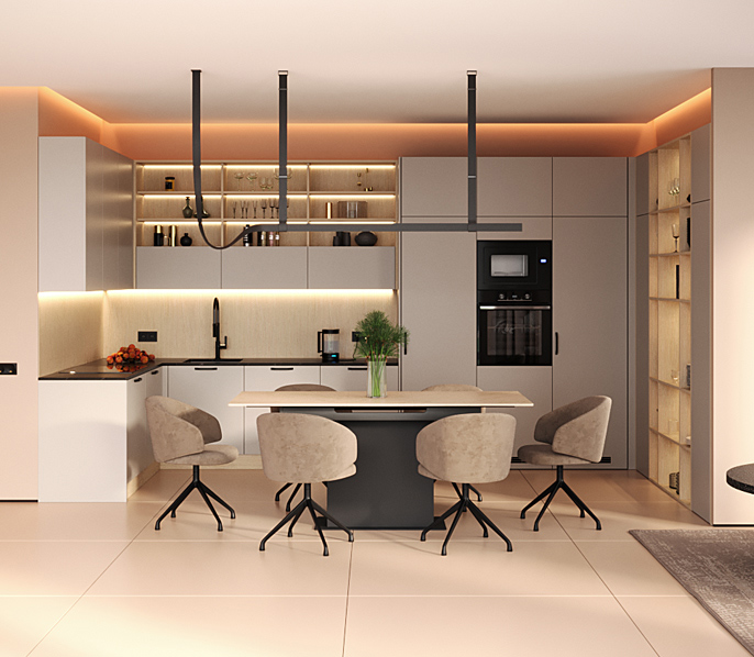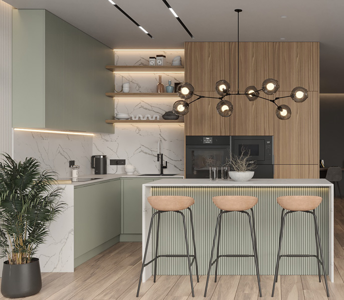 Да, 3D проект современной кухни, а также кухни любого другого стиля будет сделан во время вашего визита в салон и консультации с дизайнером. Если вы в настоящее время находитесь в отъезде, можно вызвать замерщика, сделать трехмерный проект и расчет онлайн. Однако рекомендуем по возможности зайти в салон лично, пообщаться с дизайнером и вместе с ним убедиться, что результат онлайн-заказа будет соответствовать вашим ожиданиям.