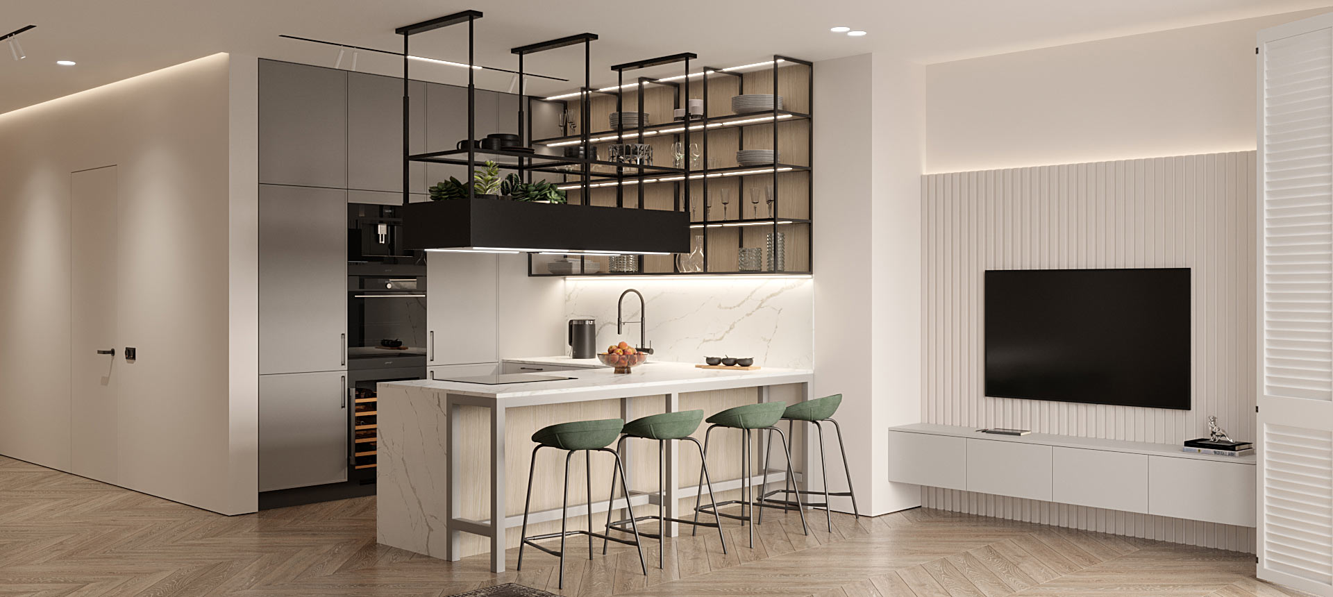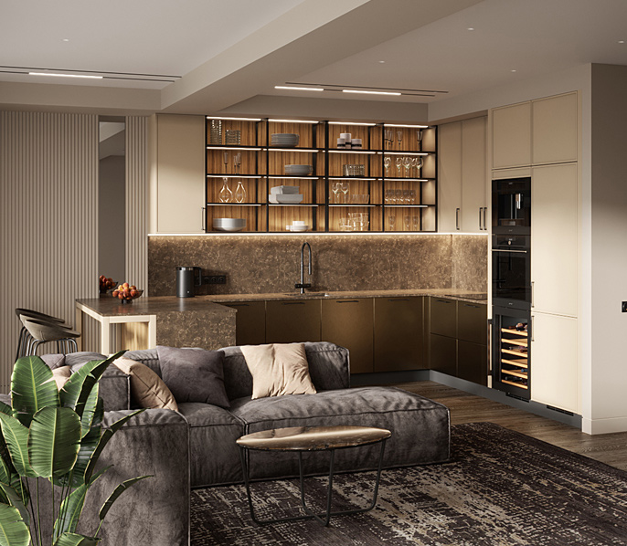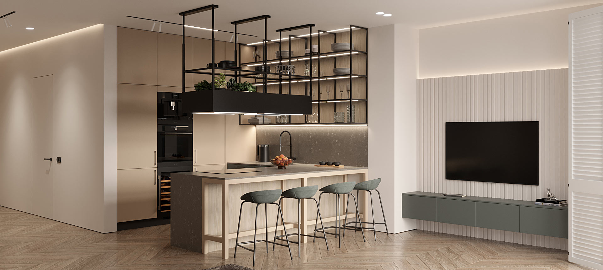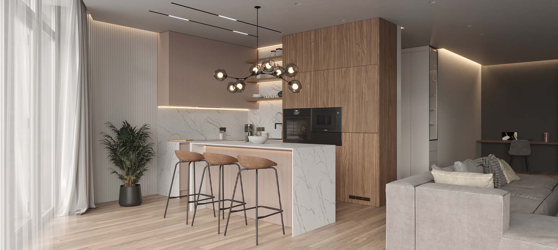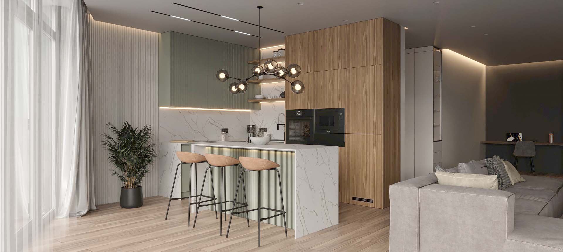 Да, 3D проект современной кухни, а также кухни любого другого стиля будет сделан во время вашего визита в салон и консультации с дизайнером. Если вы в настоящее время находитесь в отъезде, можно вызвать замерщика, сделать трехмерный проект и расчет онлайн. Однако рекомендуем по возможности зайти в салон лично, пообщаться с дизайнером и вместе с ним убедиться, что результат онлайн-заказа будет соответствовать вашим ожиданиям.
