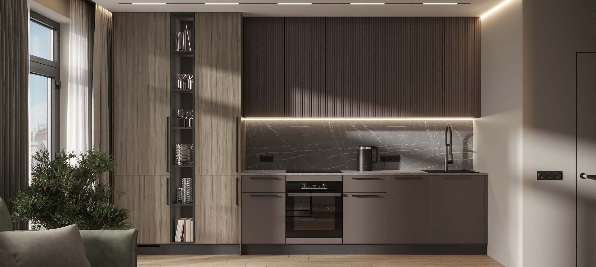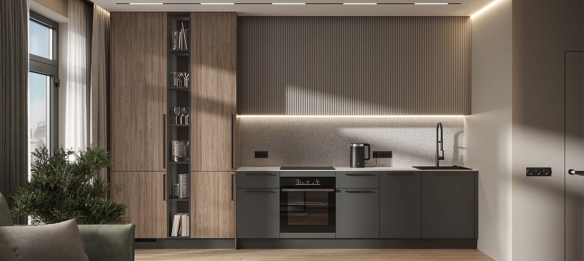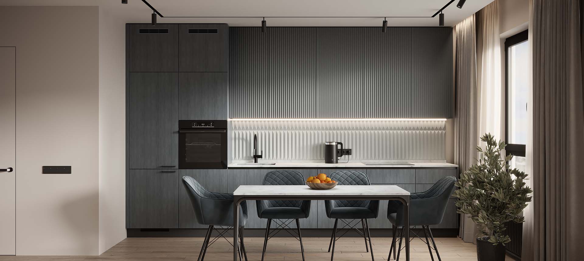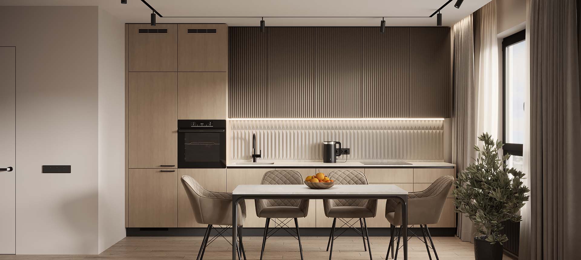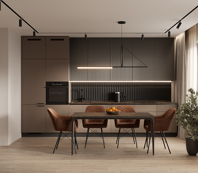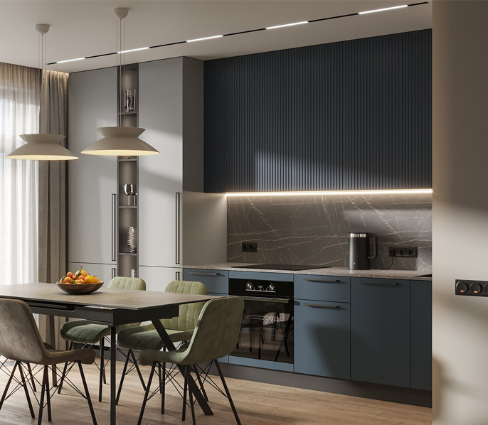 Чтобы дизайнер бесплатно создал проект прямой кухни с учётом ваших пожеланий по планировке, цвету, наполнению.