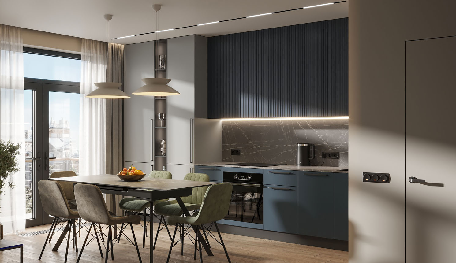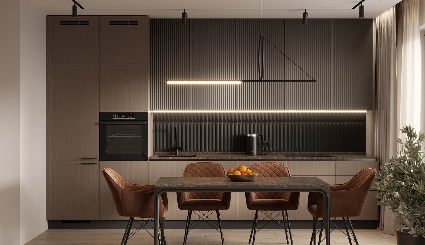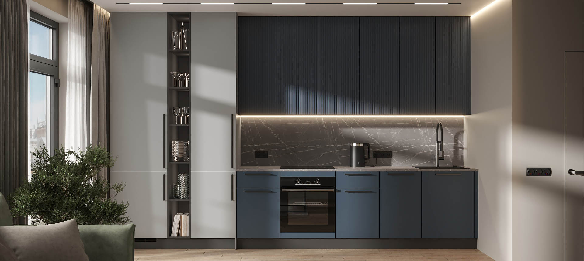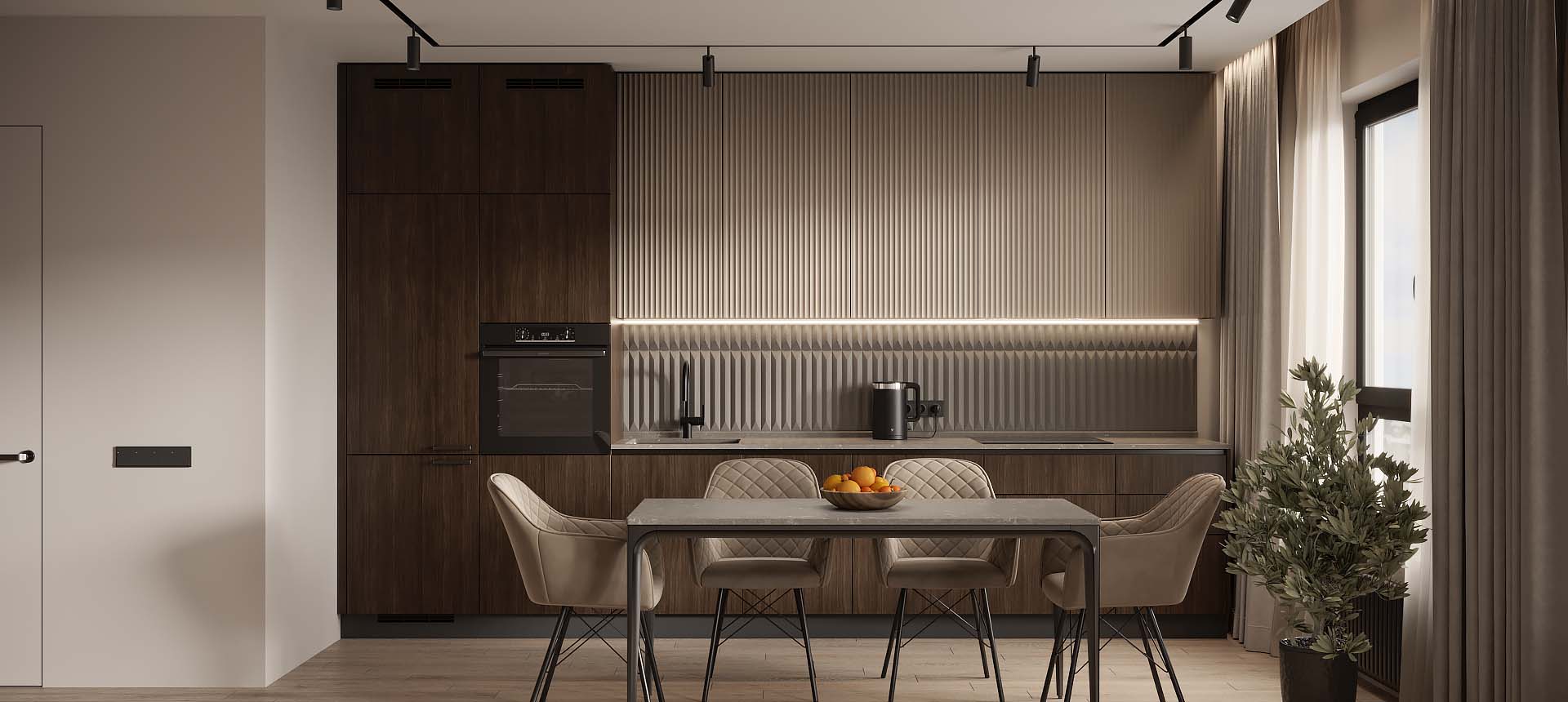 Чтобы дизайнер бесплатно создал проект прямой кухни с учётом ваших пожеланий по планировке, цвету, наполнению.