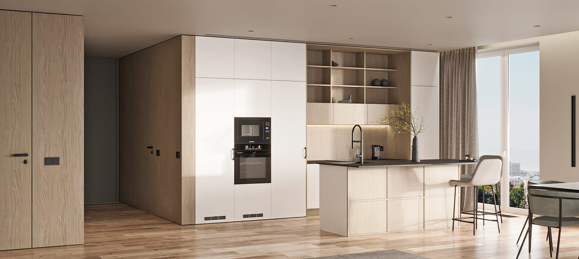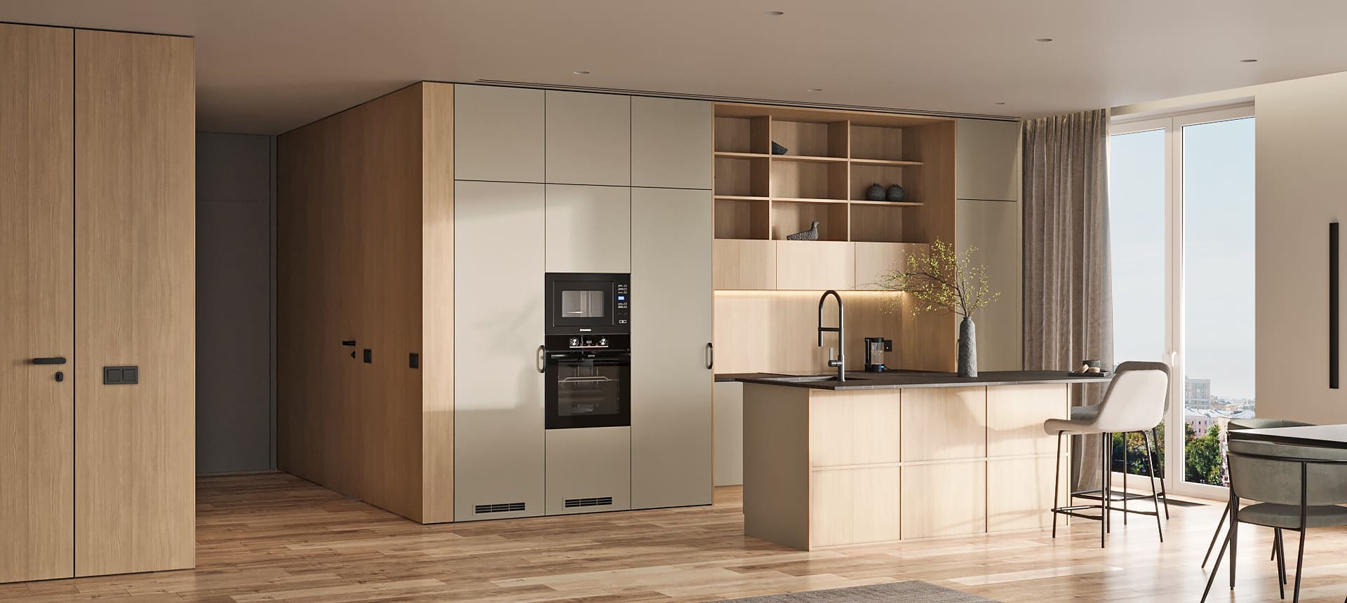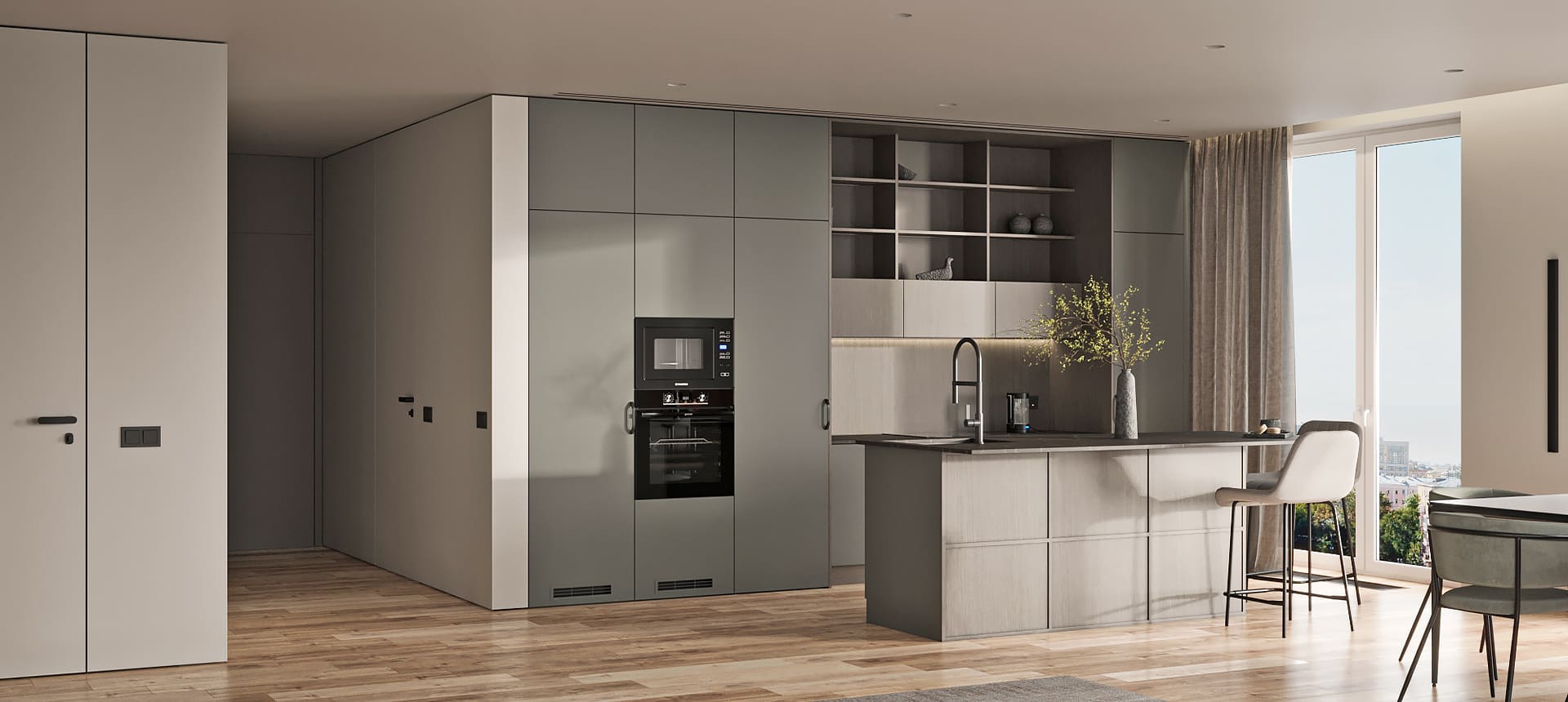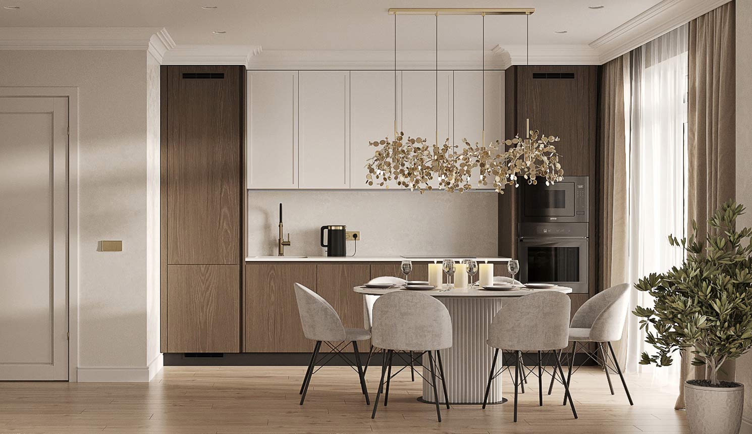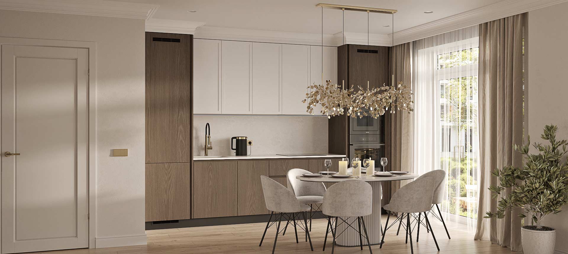 Чтобы дизайнер бесплатно создал проект прямой кухни с учётом ваших пожеланий по планировке, цвету, наполнению.