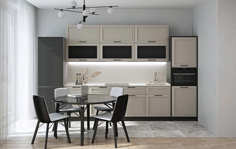 Продукция фабрики выполняется в классических и современных стилях. Вы можете реализовать все свои идеи благодаря разнообразию фасадов и фурнитуры. Классические и современные кухни могут быть дополнены бытовой техникой.