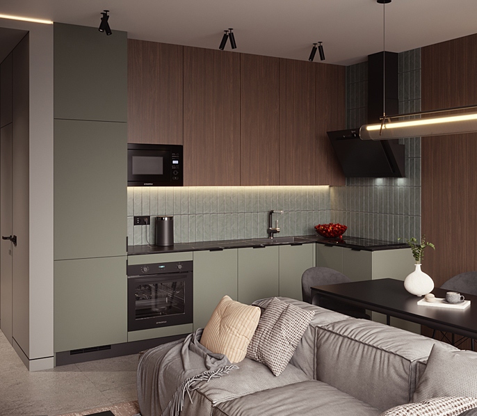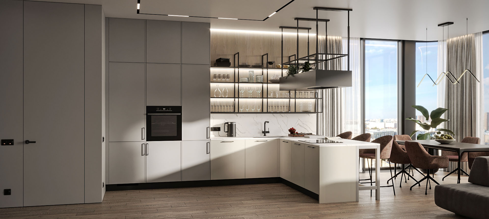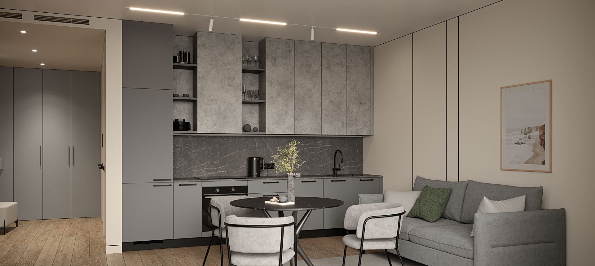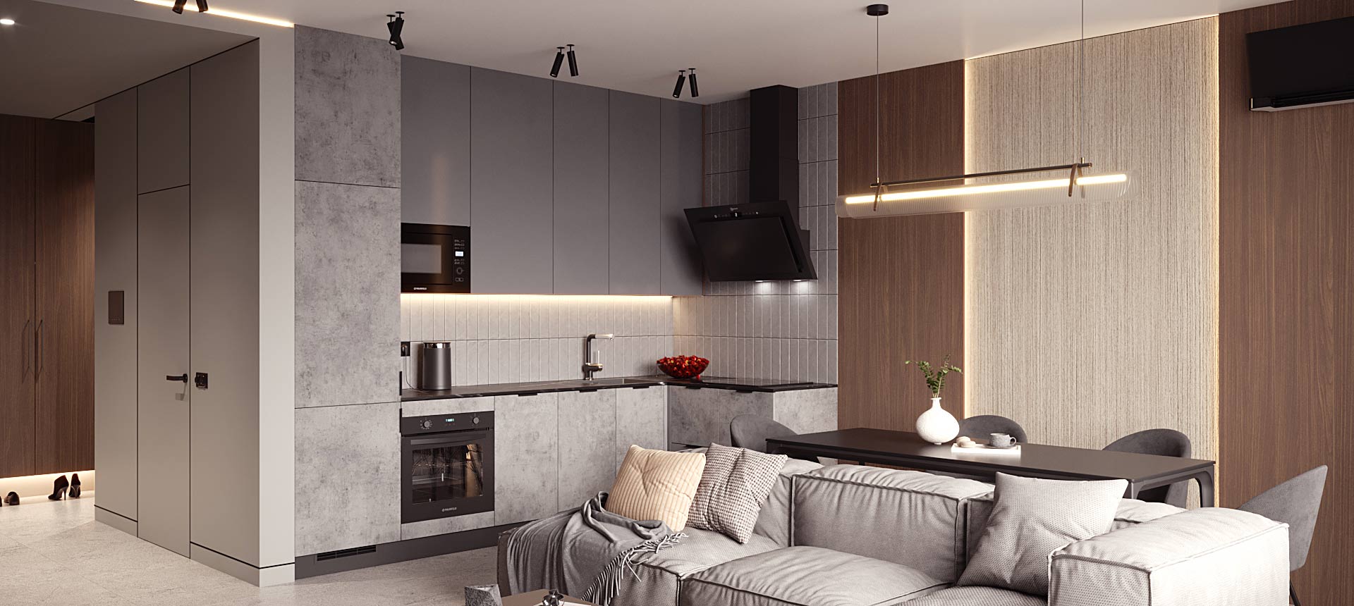 Кухня в стиле лофт и вместительный шкаф для новостройки в Санкт-Петербурге