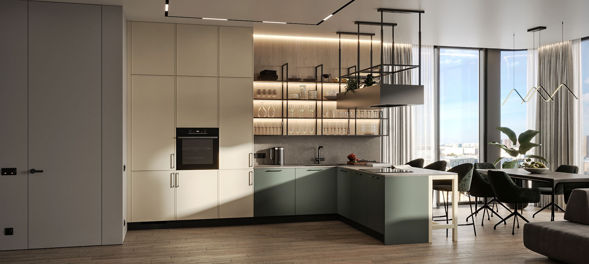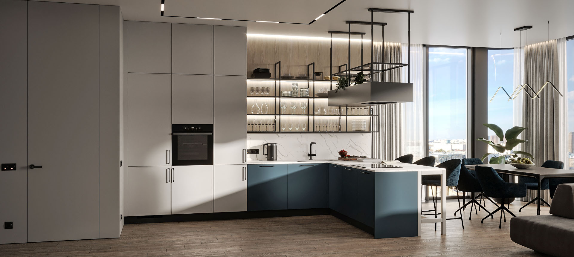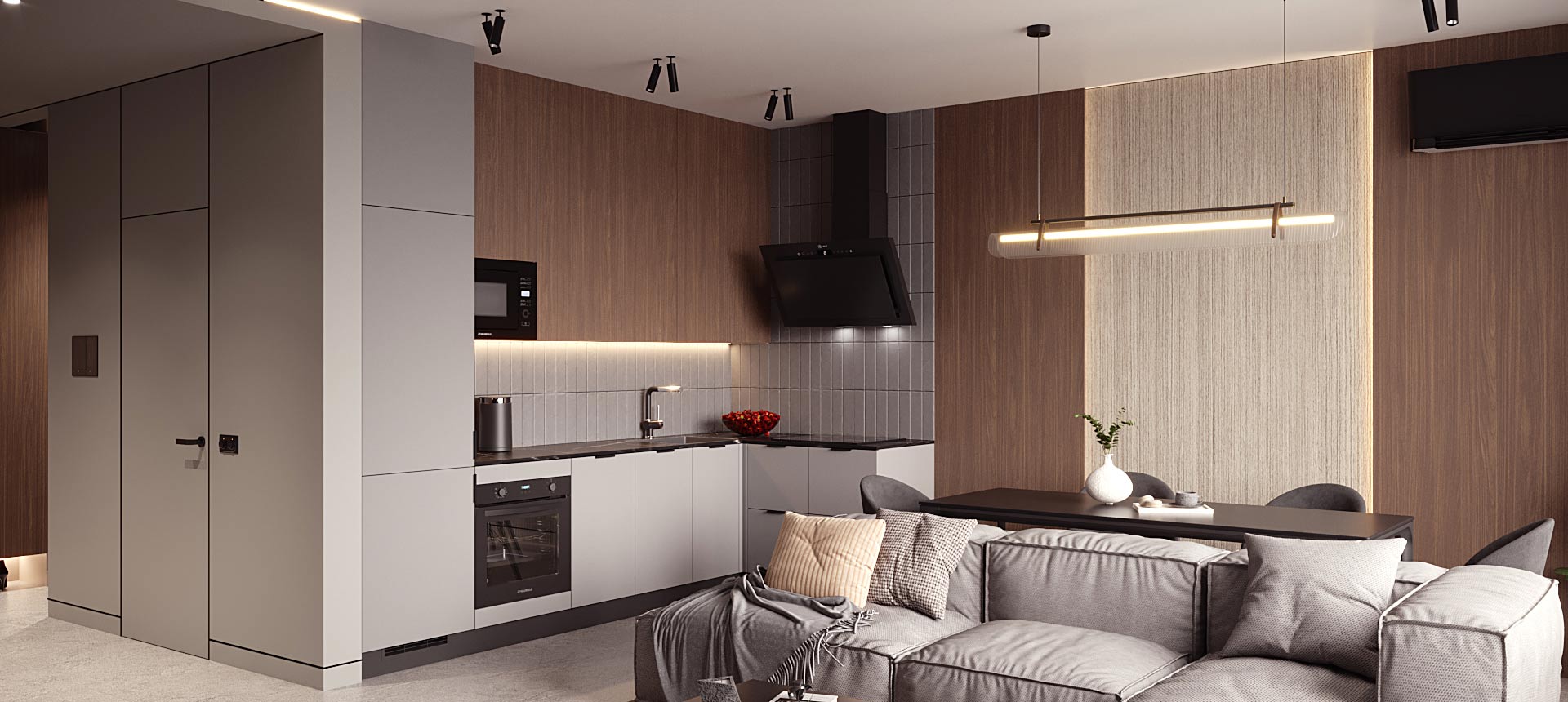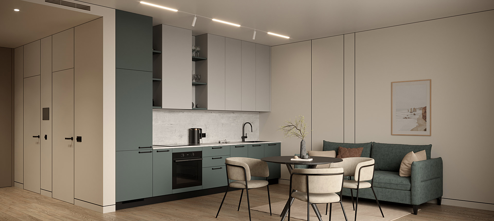 Кухня в стиле лофт и вместительный шкаф для новостройки в Санкт-Петербурге