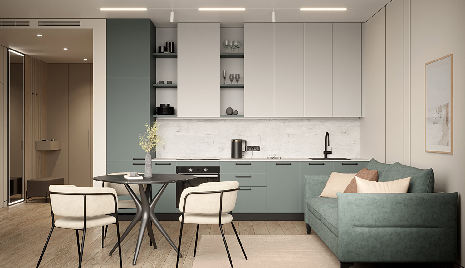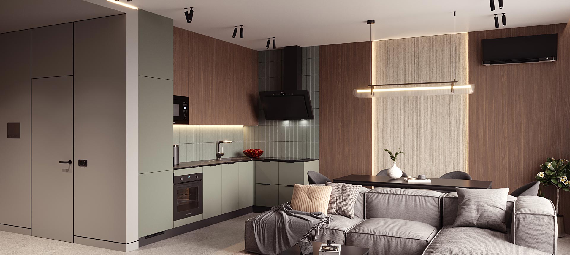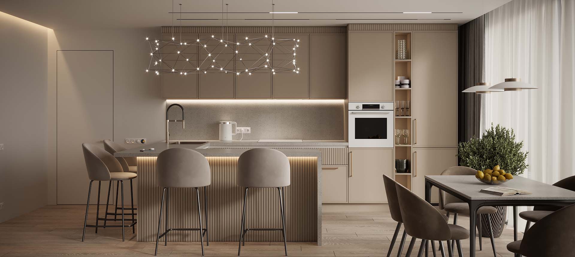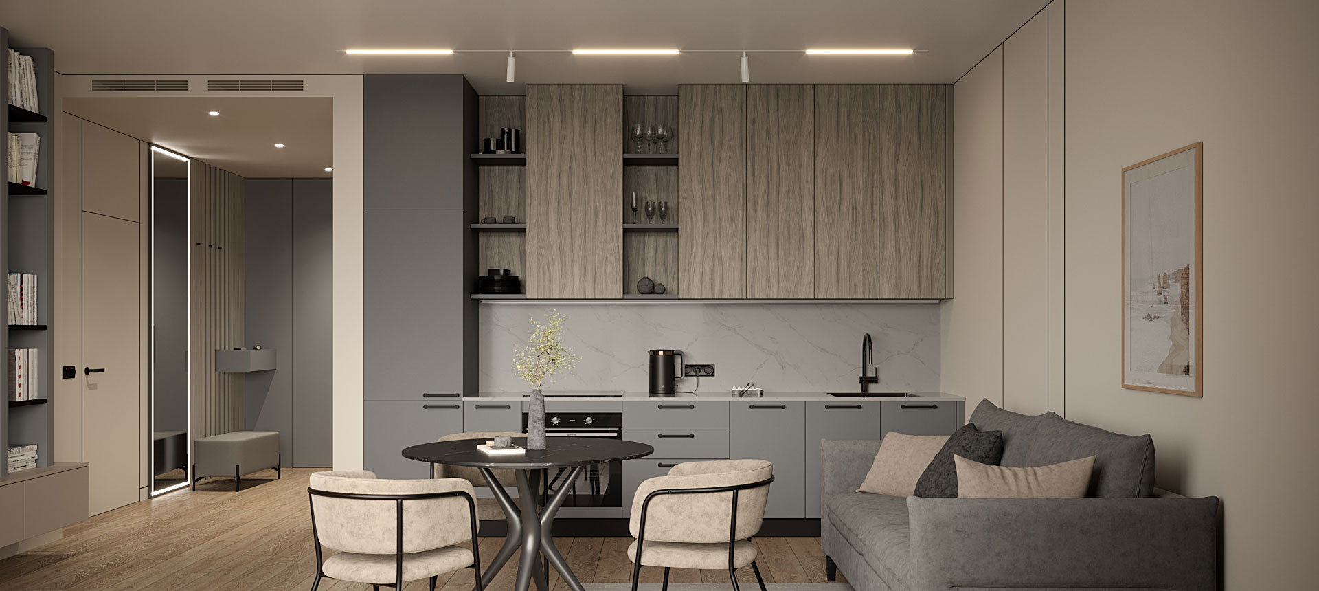 Светлая функциональная квартира в бежевых тонах для семьи из трех человек