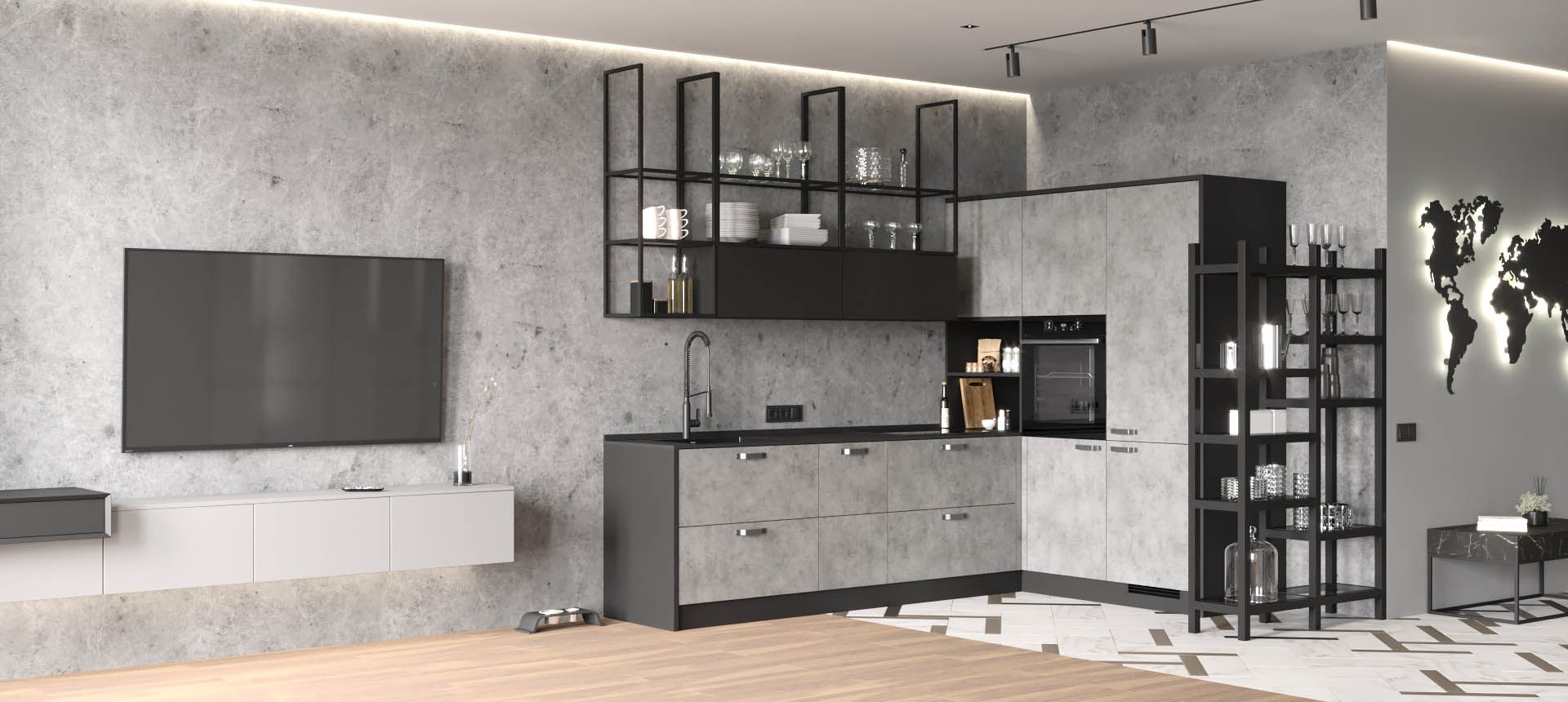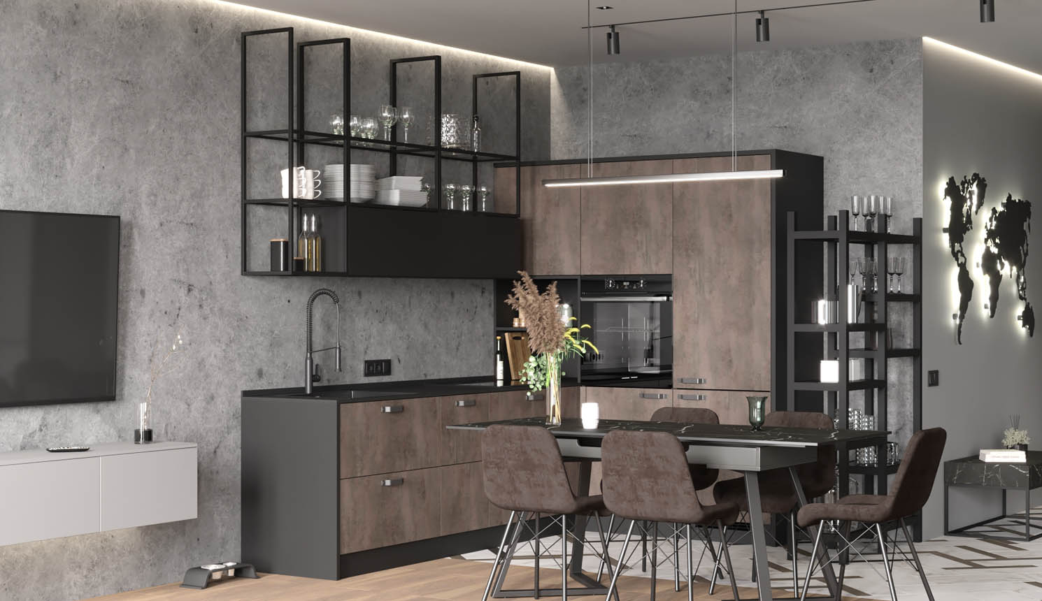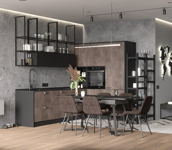 Кухня в стиле лофт и вместительный шкаф для новостройки в Санкт-Петербурге