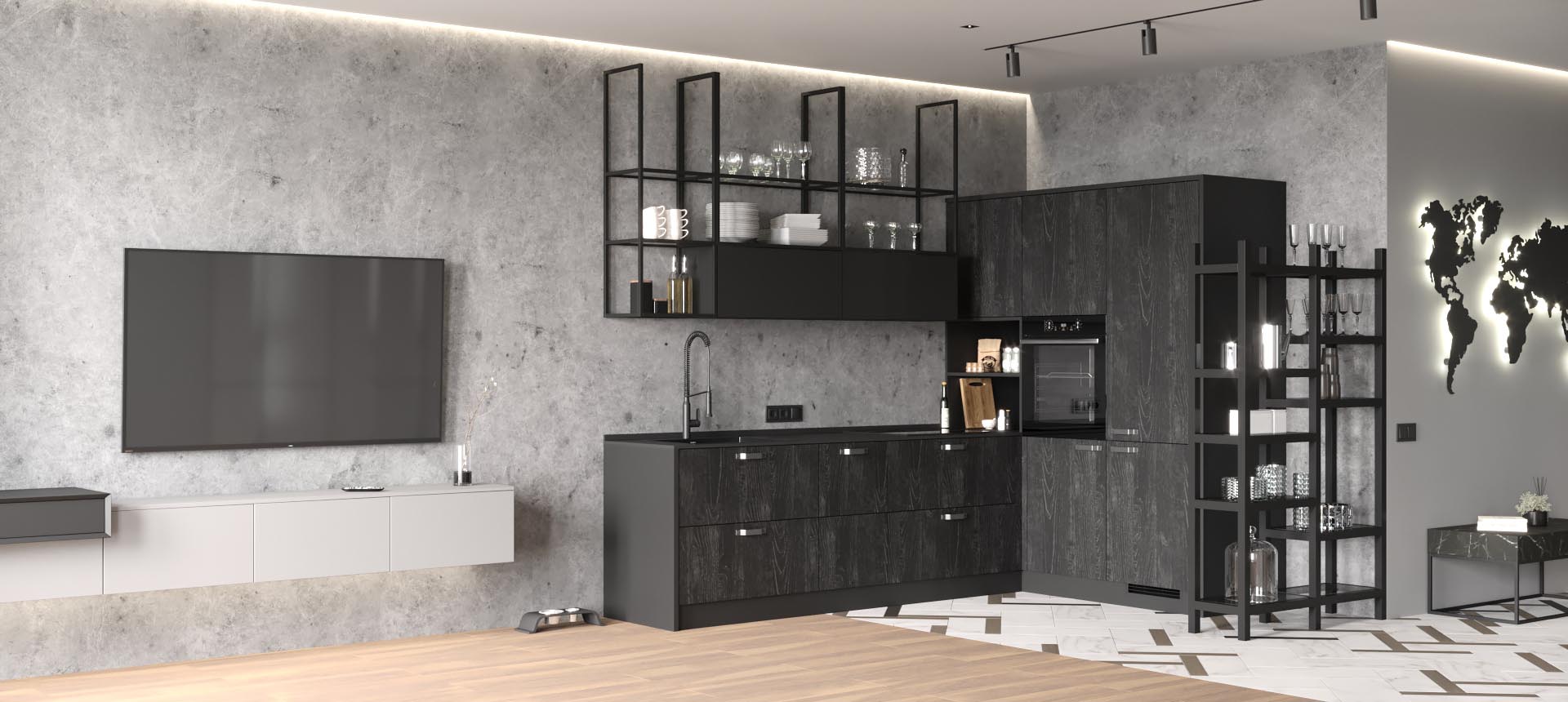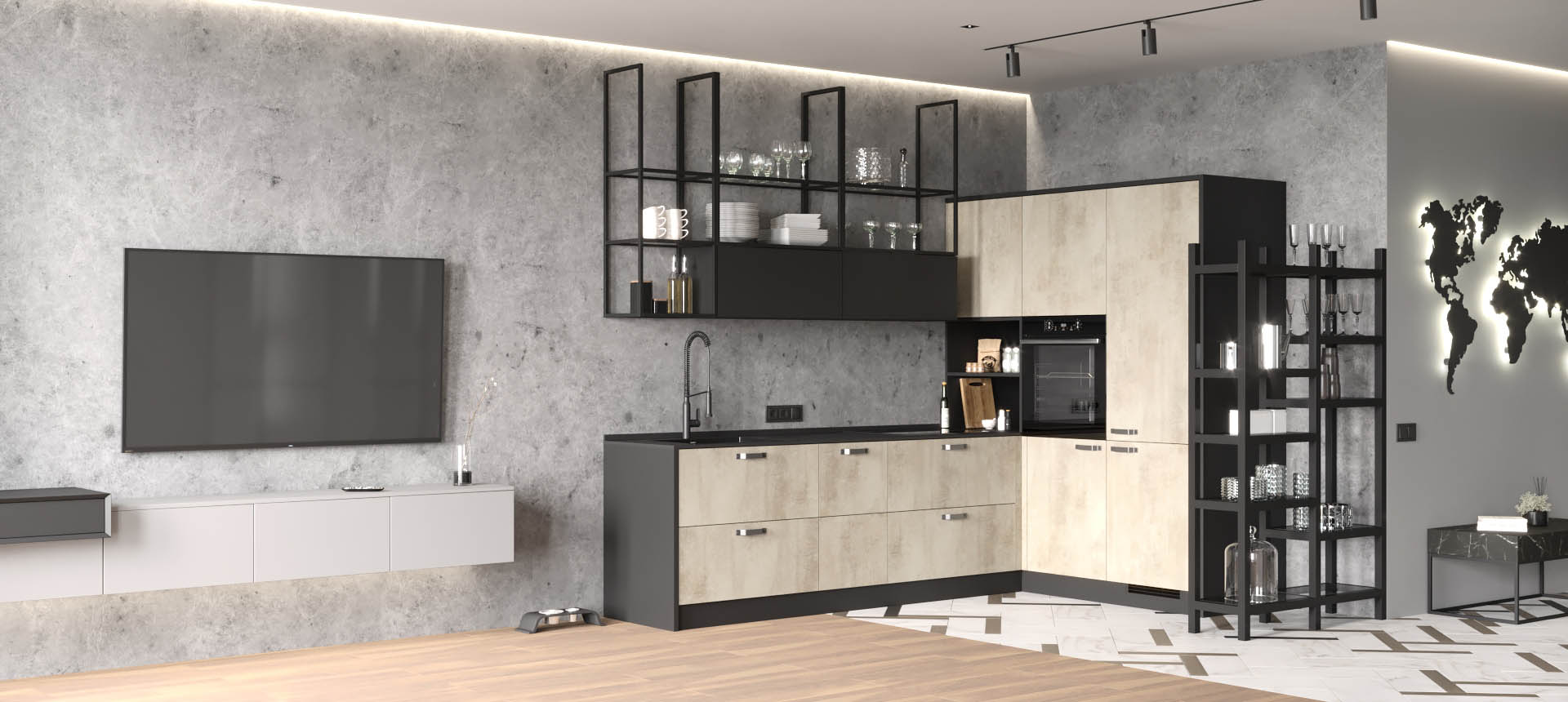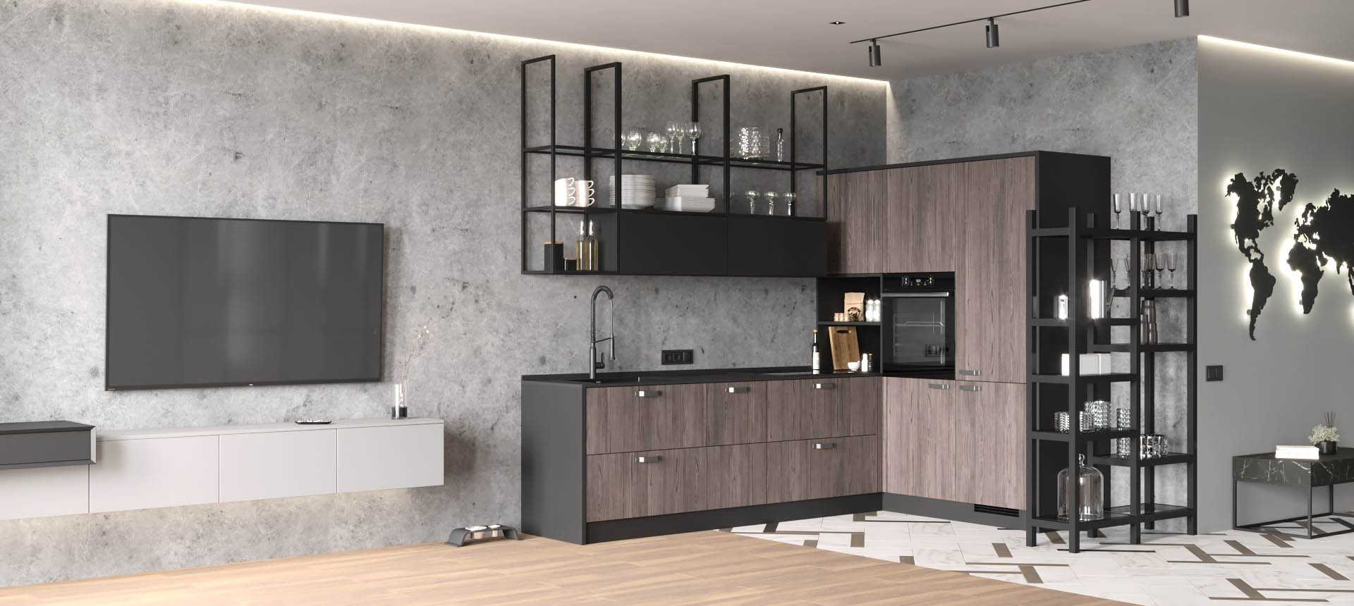 Кухня в стиле лофт и вместительный шкаф для новостройки в Санкт-Петербурге