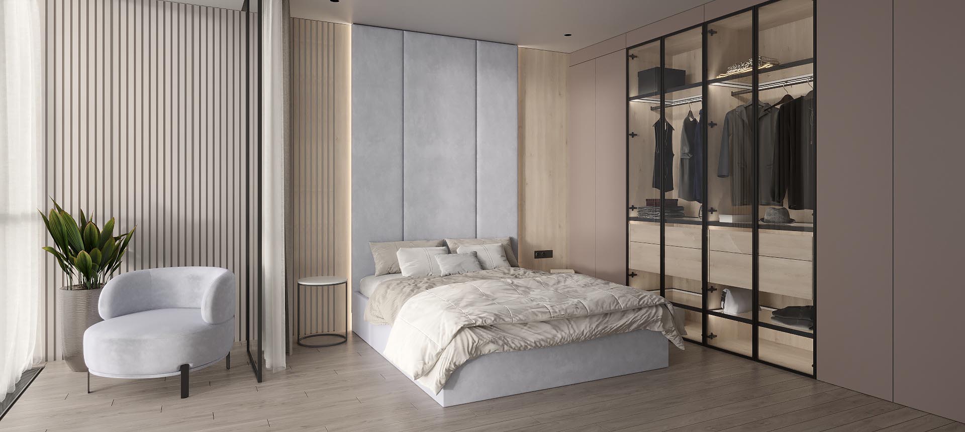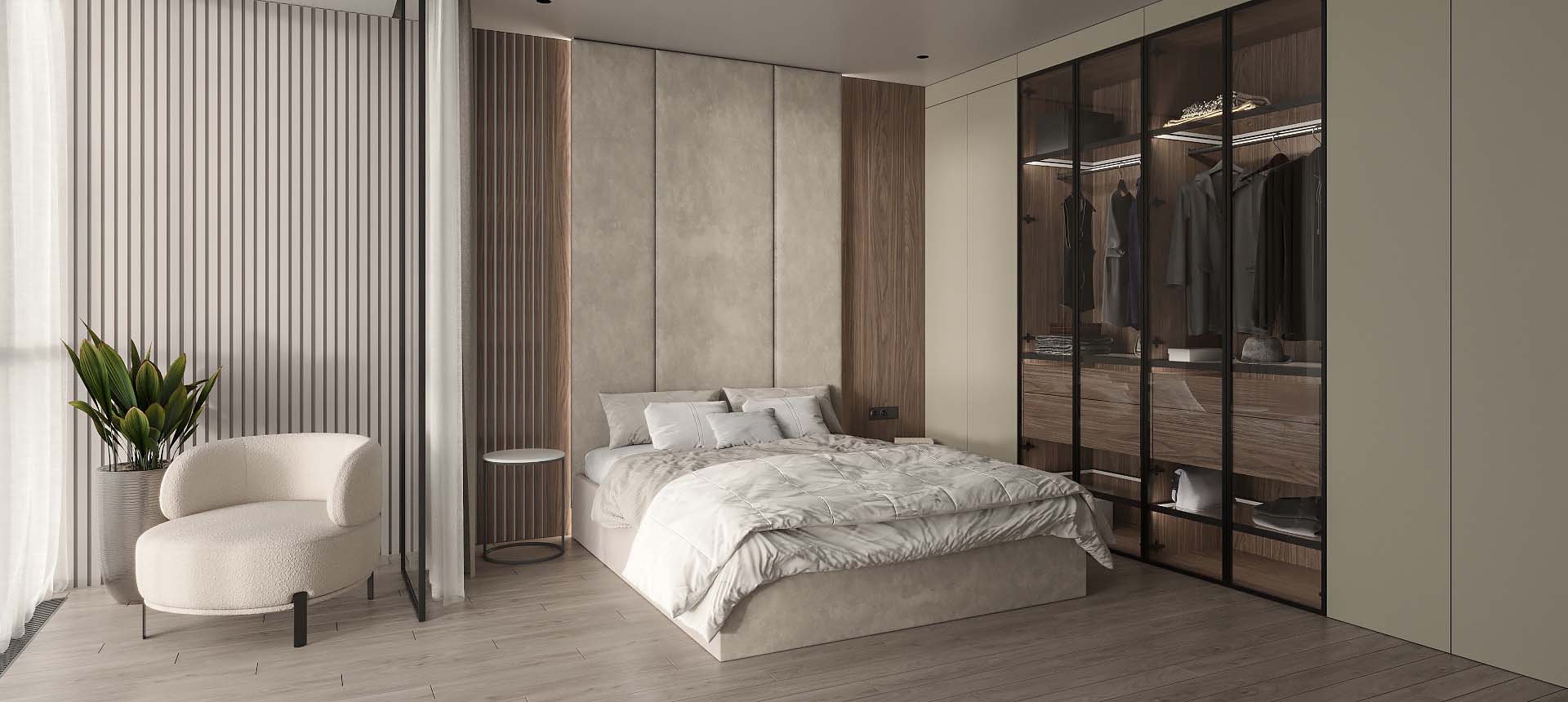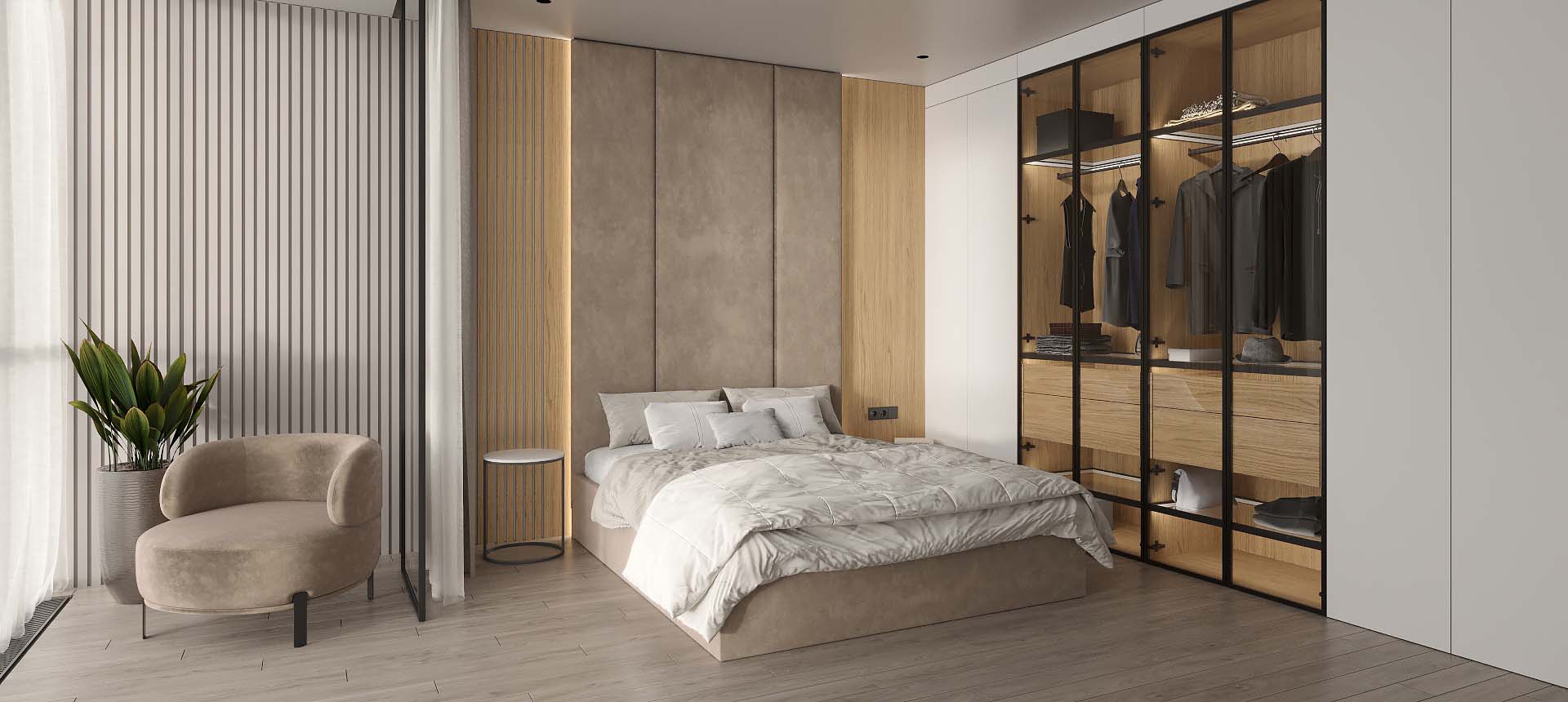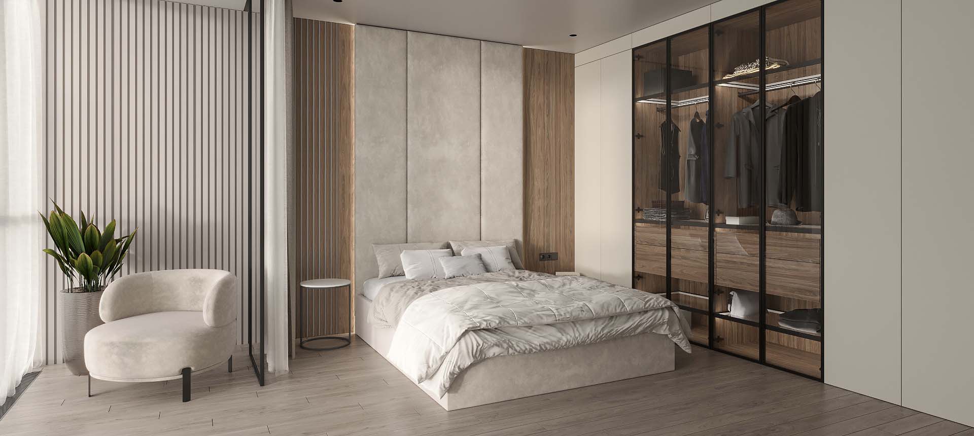«Стильные Кухни и Интерьеры» сделали стеновые панели во всю стену в двух спальнях, и это было два разных решения. Стеновые панели в одной из спален обтянуты тканью, создавая эффект мягкости и утонченности» — читать полностью
