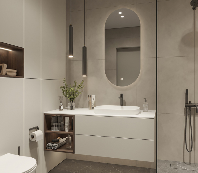 Мы специализируемся на производстве мебели для ванных на заказ, поэтому стоимость изделия будет рассчитана индивидуально.