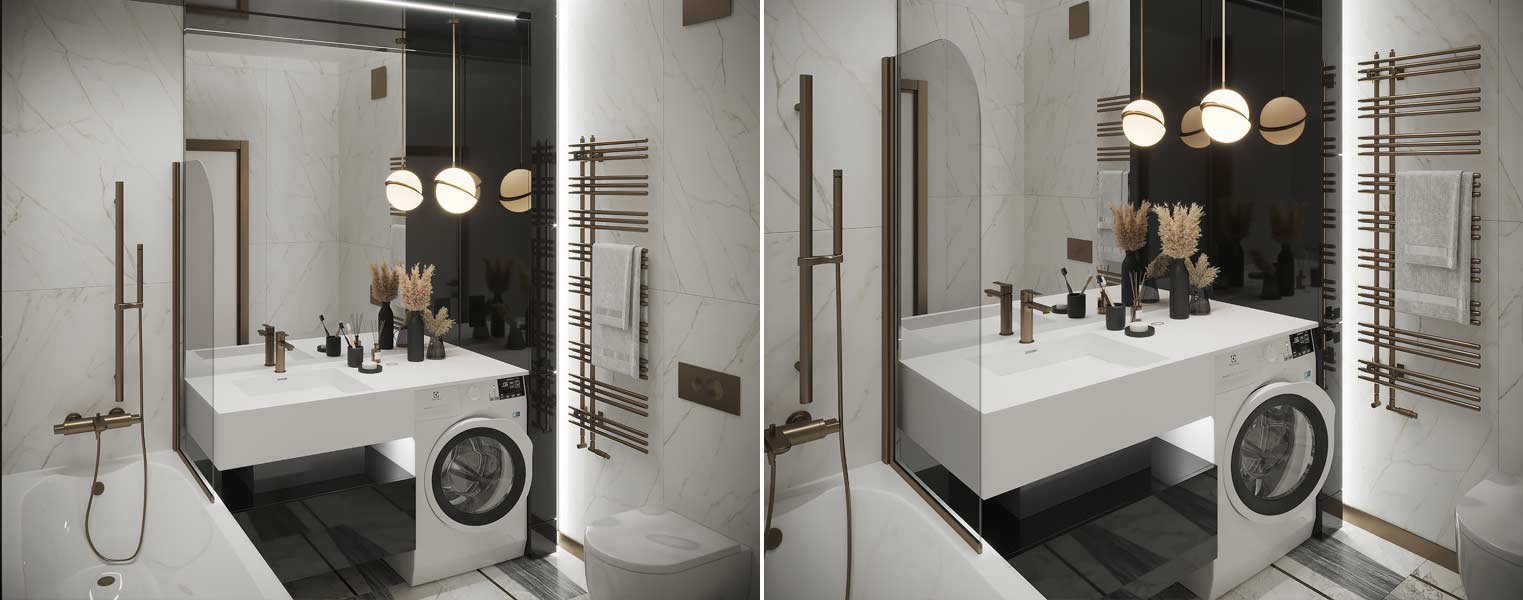 Вы можете заказать изготовление мебели для ванной под ключ, выбрав другое цветовое решение или материалы. Возможные варианты сочетаний цветов и текстур для вдохновения — под фото.