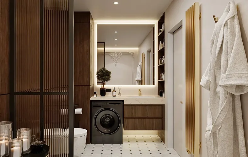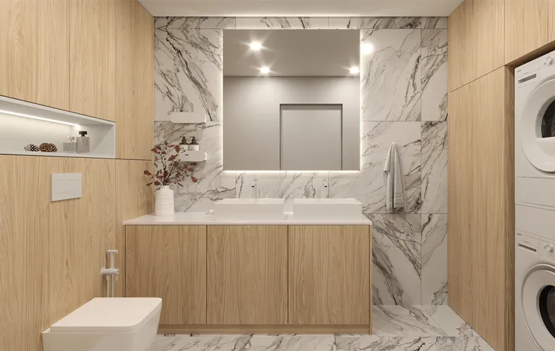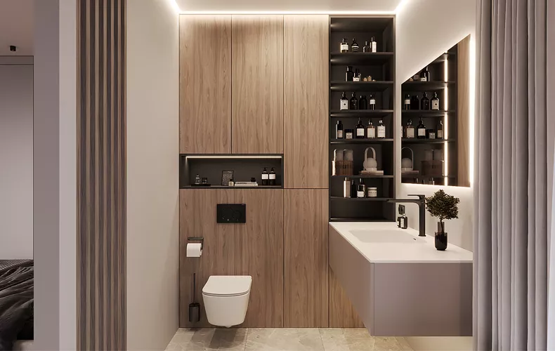 Мебель для ванной 4 — смелый микс стиля и функциональности, создающий атмосферу тепла и уюта.
