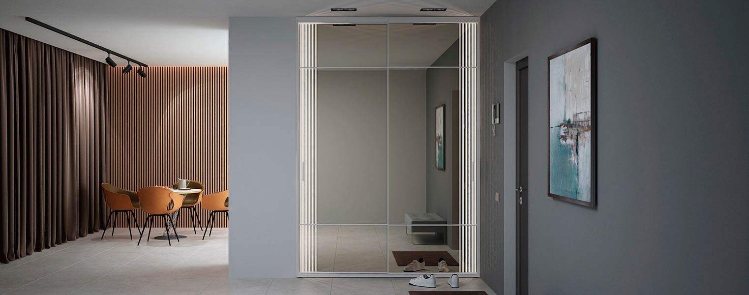 Функциональный шкаф-купе для балкона. Идеальное решение для хранения вещей. Полки, штанга и стеклянные двери обеспечивают удобный доступ к содержимому. Встроенная подсветка позволит легко найти нужную вещь даже в темноте.