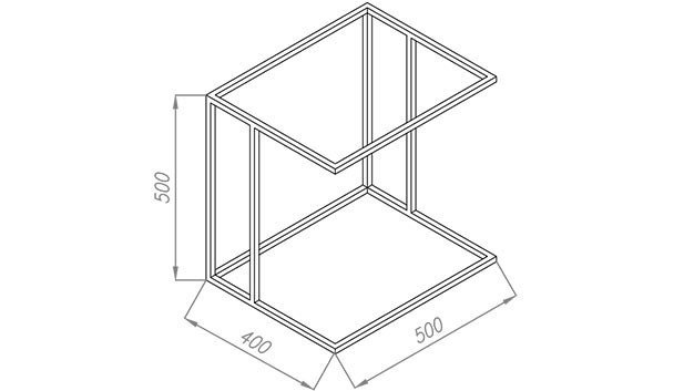 Консольный декоративный журнальный столик имеет прямоугольную конфигурацию и стальной каркас чёрного цвета. Его можно поставить в гостиной или спальне.