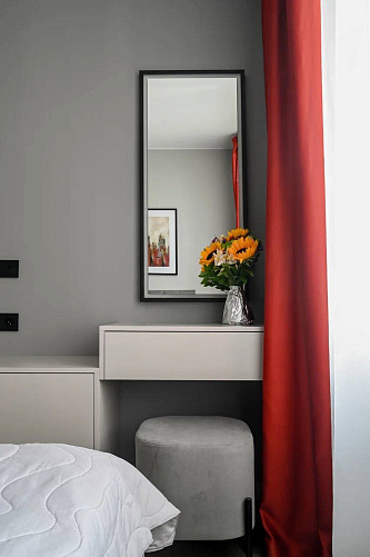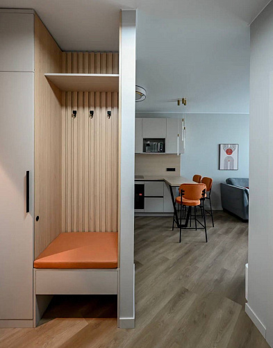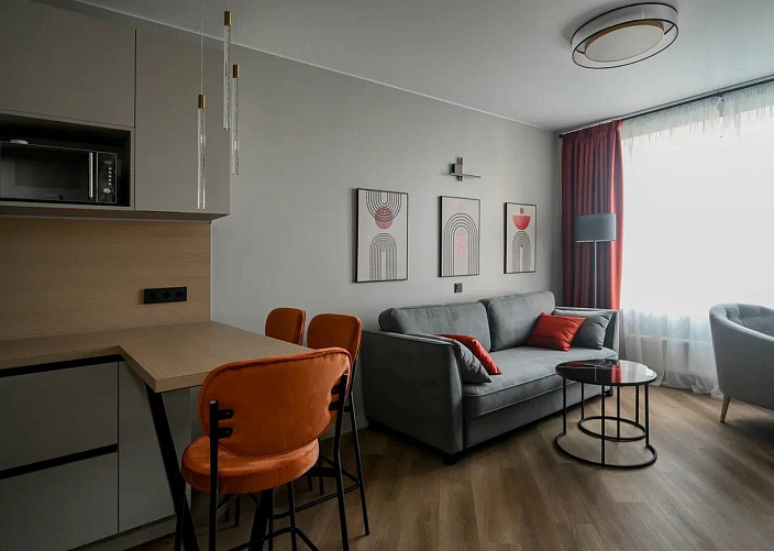 Целью проекта было создание универсального интерьера для сдачи в аренду. Чтобы уйти от безликости стандартной серо-бежевой отделки, было решено использовать оранжевый цвет как яркую визуальную доминанту.