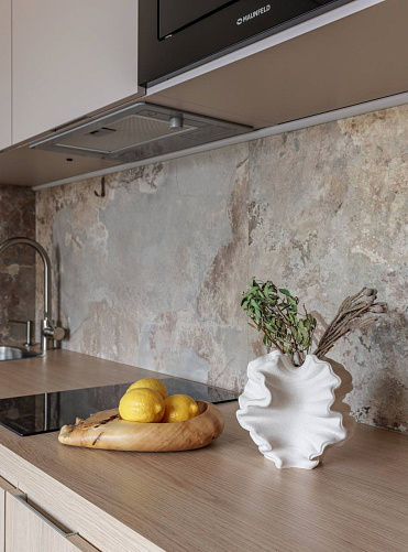 Кремовый оттенок уникален: он всегда актуален, никогда не надоедает, выглядит гораздо уютнее чисто белого и отлично сочетается с самыми разными цветами. Но интереснее всего в дизайне выглядит его сочетание с активными фактурами — например, насыщенной древесной, как в комплекте «Фабио Комфорт» сет 23.