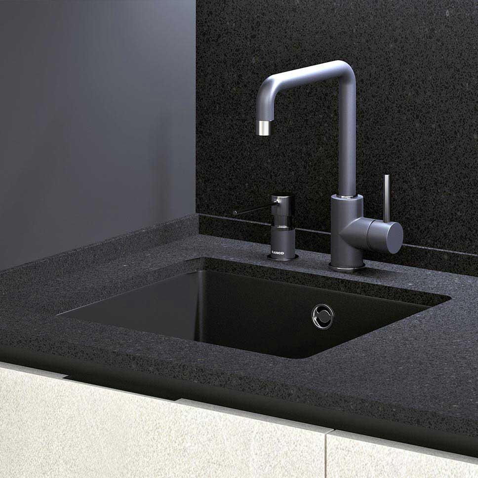 • Красивая кухня с золотыми акцентами в двухкомнатной квартире бизнес-класса