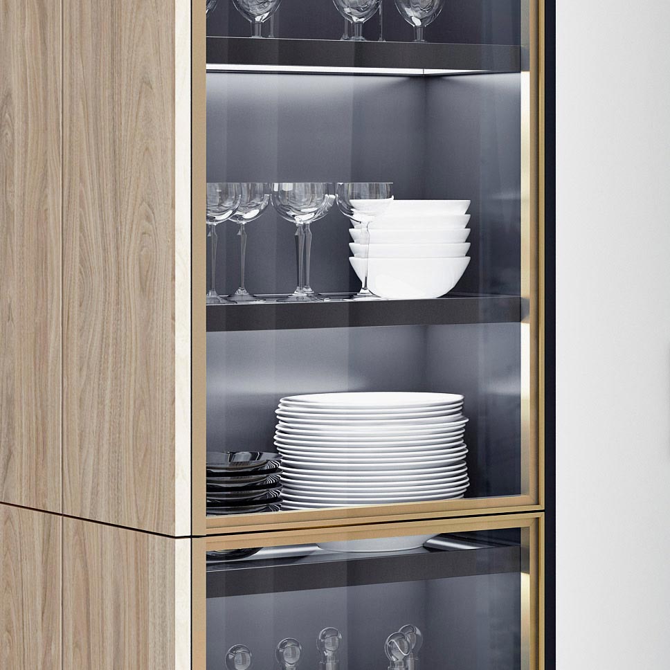 • Красивая кухня с золотыми акцентами в двухкомнатной квартире бизнес-класса